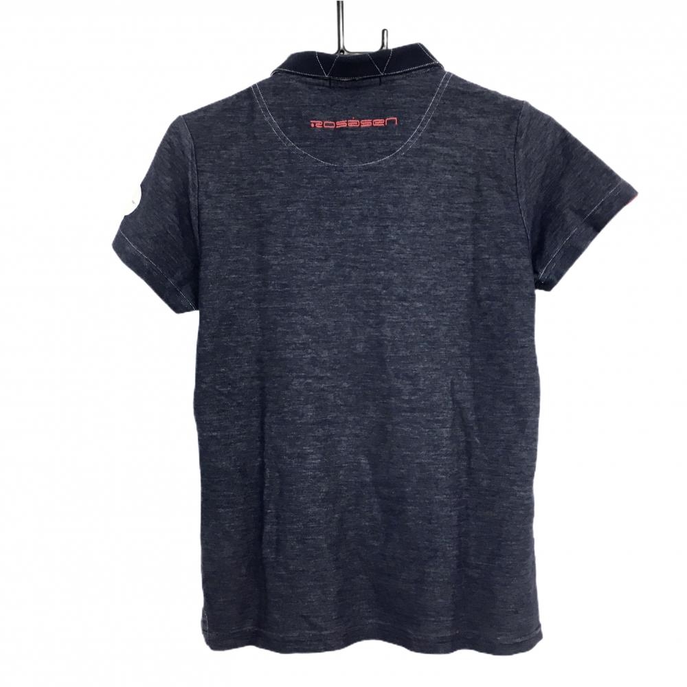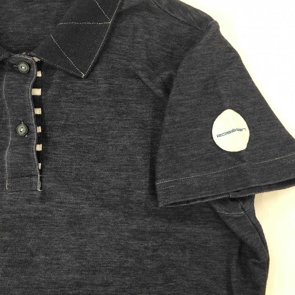 ロサーセン 半袖ポロシャツ ネイビー×白 デニム調 ロゴ刺しゅう レディース L ゴルフウェア Rosasen