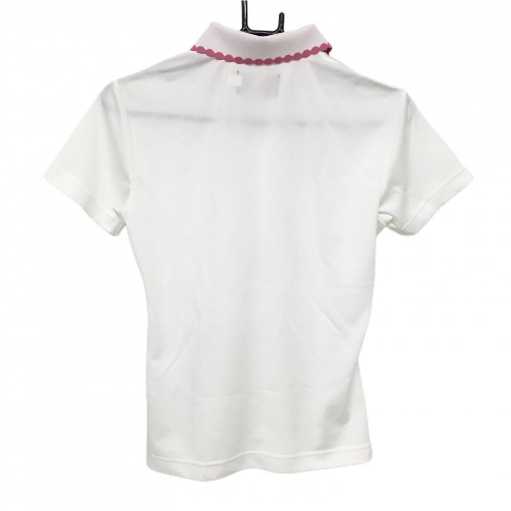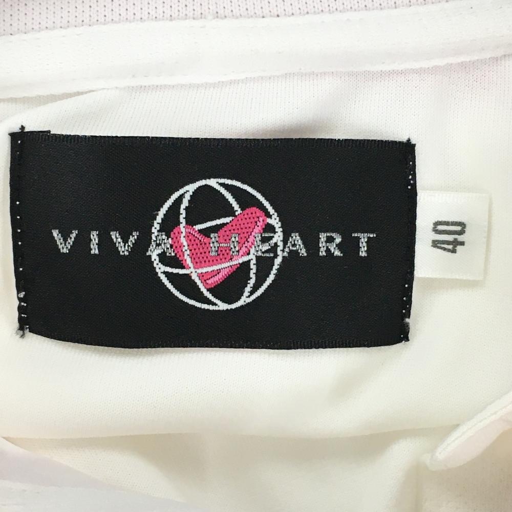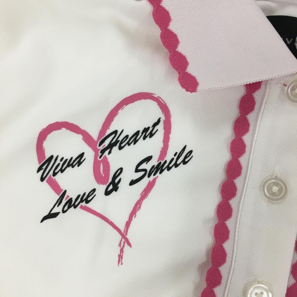 【超美品】ビバハート 半袖ポロシャツ 白×ピンク 襟・前立てフリル風 胸元ロゴ レディース 40(M) ゴルフウェア VIVA HEART