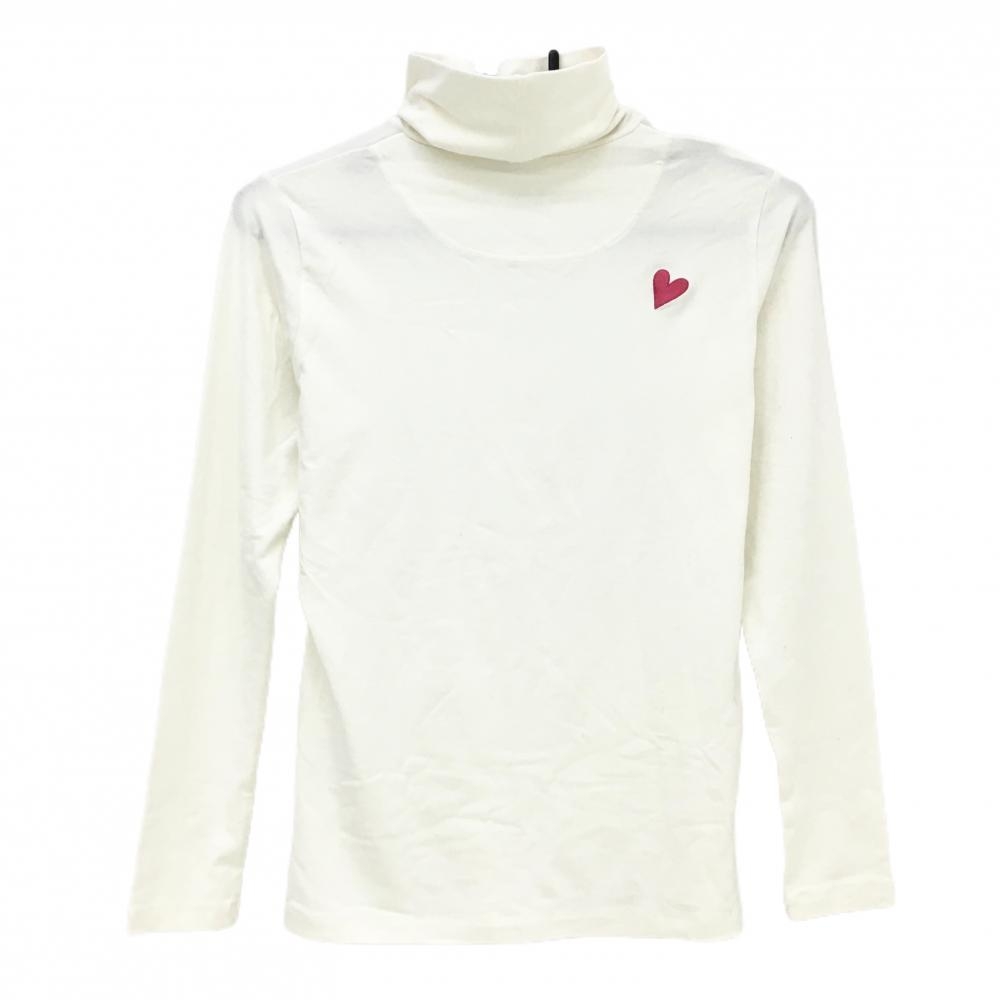 【美品】ルコックゴルフ 長袖ハイネックシャツ 白 表微起毛 背面ハート レディース M ゴルフウェア le coq sportif