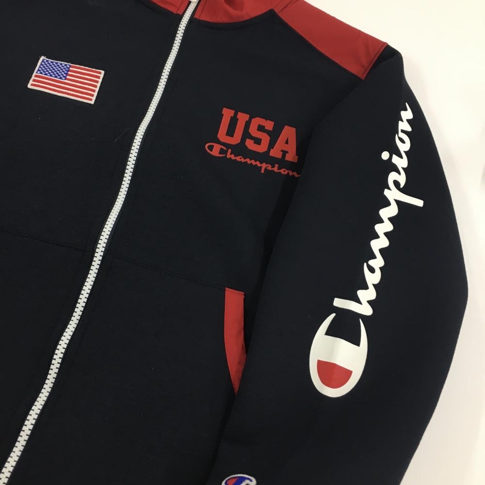 【美品】チャンピオン ジャケットブルゾン ネイビー×レッド ダブルジップ USA レディース L ゴルフウェア Champion