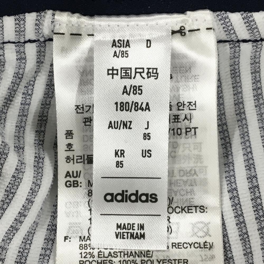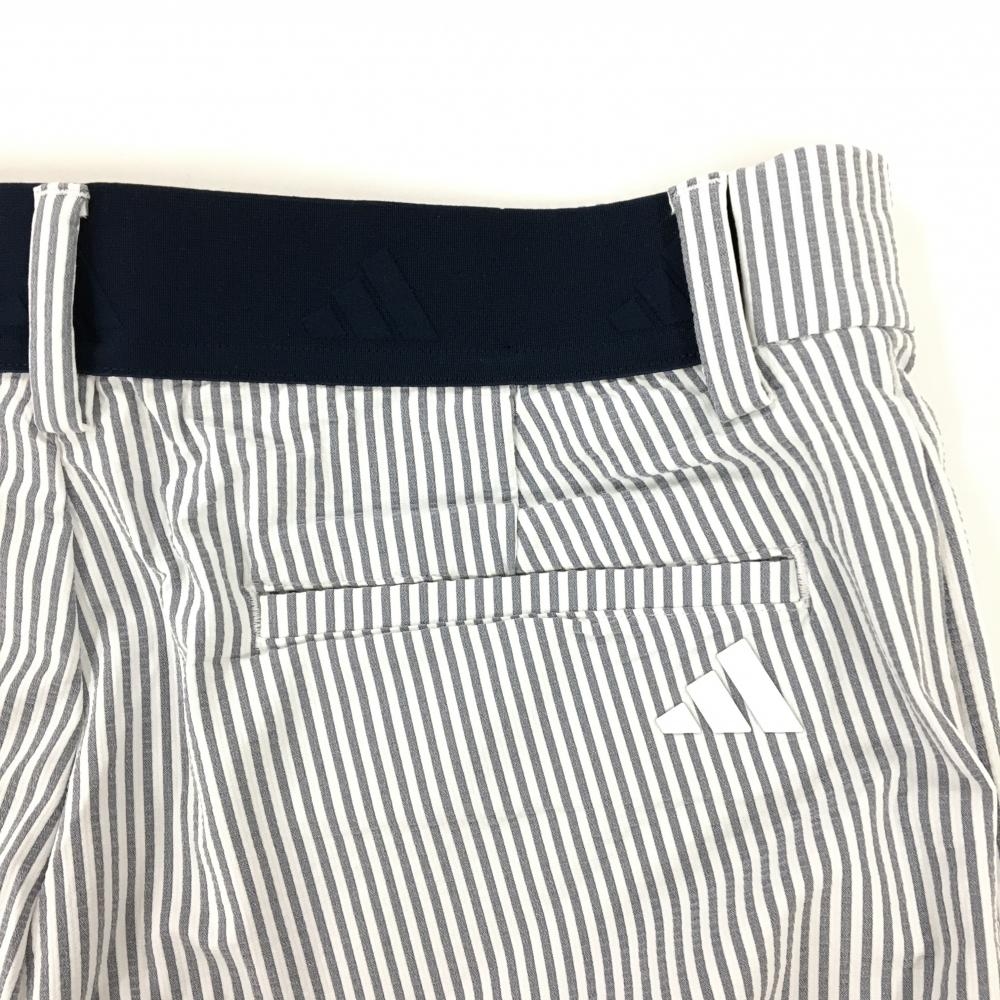 【超美品】アディダス パンツ 白×グレー系 ストライプ サッカー生地 4WAYストレッチ メンズ 85 ゴルフウェア 2024年モデル adidas