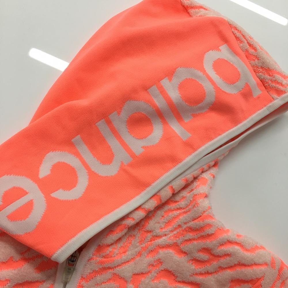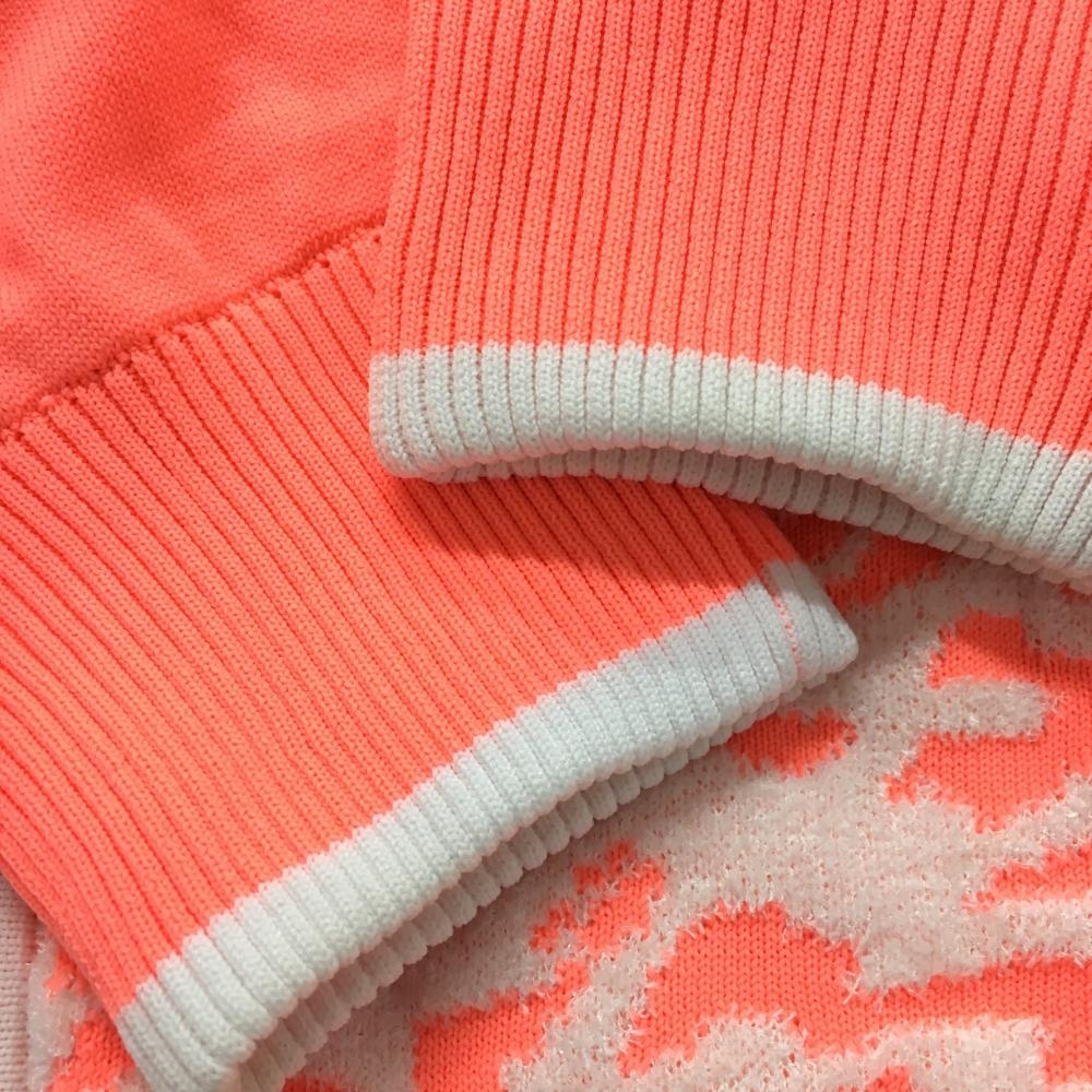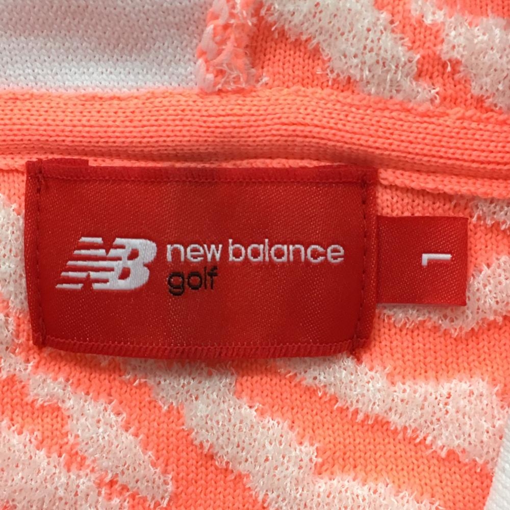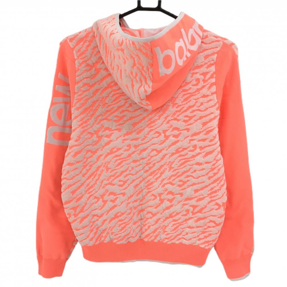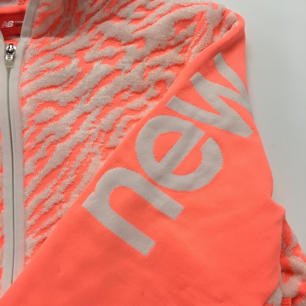 【美品】ニューバランスゴルフ ニットジップパーカー 蛍光サーモンピンク系×白 ゼブラ調 レディース 1(M) ゴルフウェア New Balance