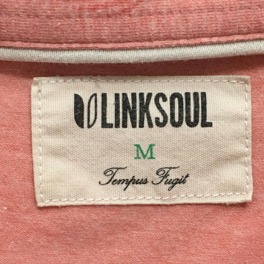 【超美品】リンクソウル 半袖ポロシャツ ピンク リーフ総柄 メンズ M ゴルフウェア LINKSOUL