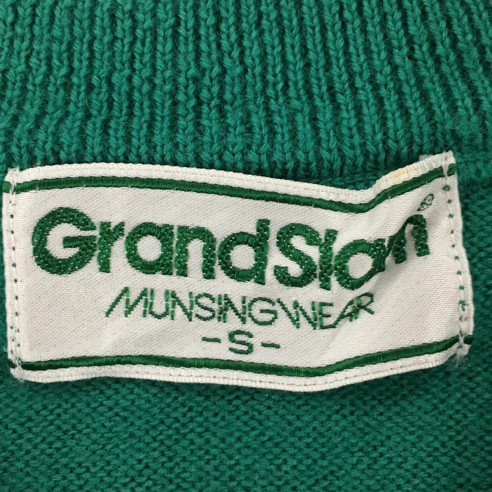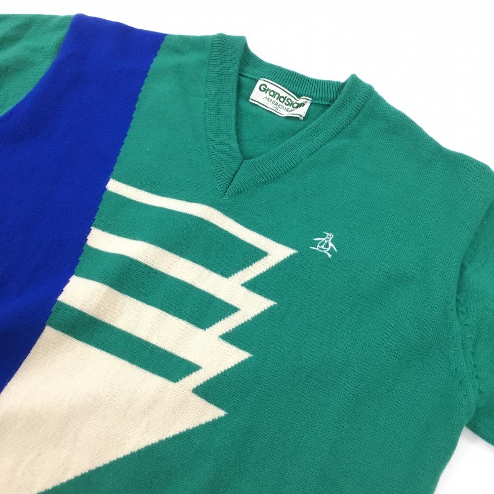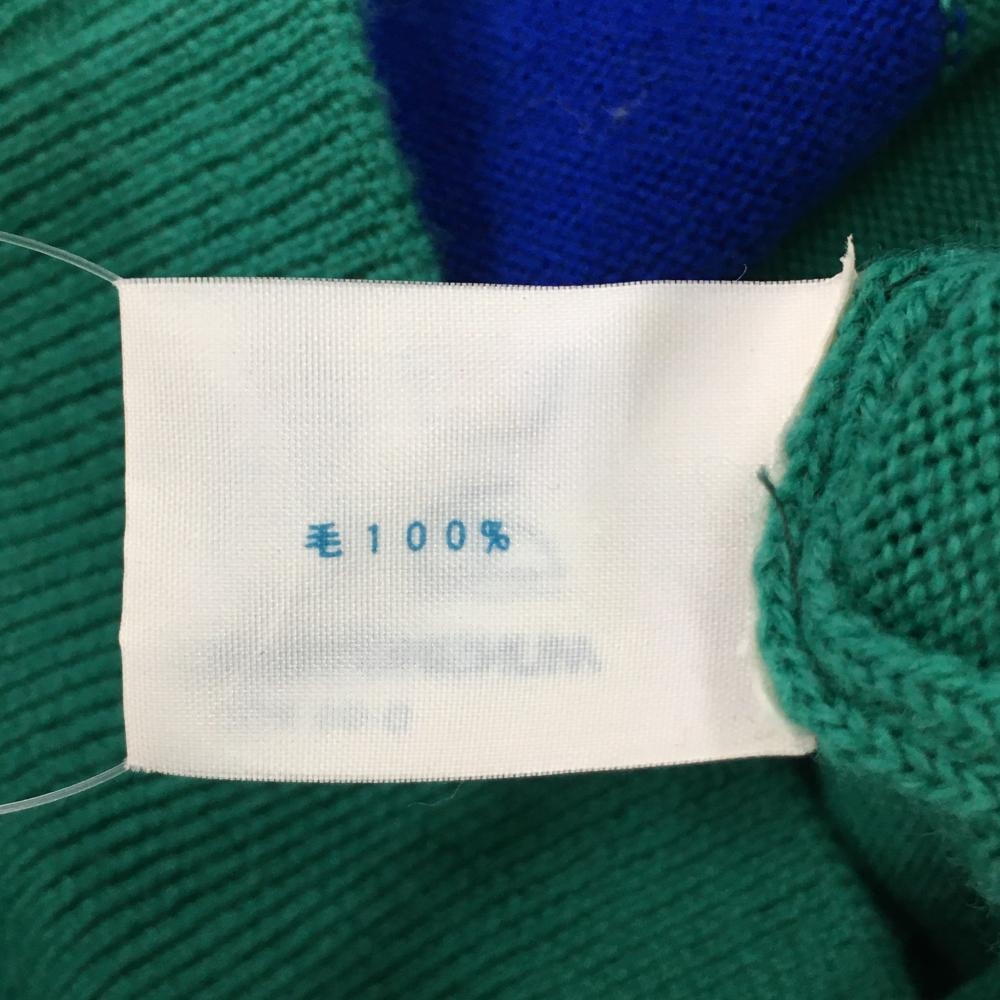 【美品】マンシングウェア セーター グリーン×ブルー×白 Vネック ロゴ刺しゅう ニット メンズ S ゴルフウェア Munsingwear