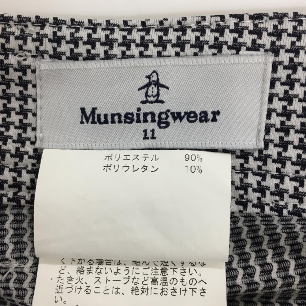 【美品】マンシングウェア パンツ 白×ネイビー 千鳥格子調 ストレッチ レディース 11 ゴルフウェア Munsingwear