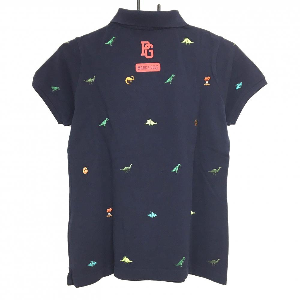 【超美品】パーリーゲイツ 半袖ポロシャツ ネイビー×グリーン 刺しゅう総柄 恐竜 レディース 0(S) ゴルフウェア PEARLY GATES