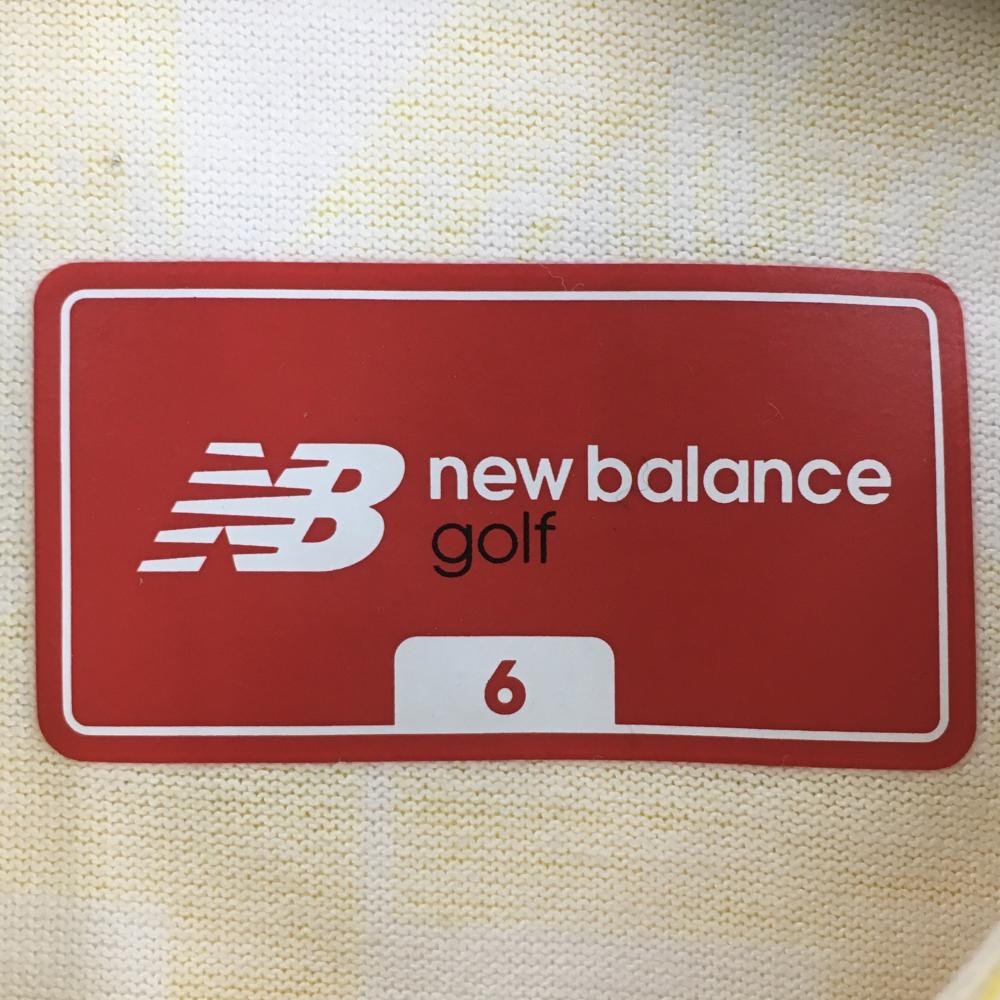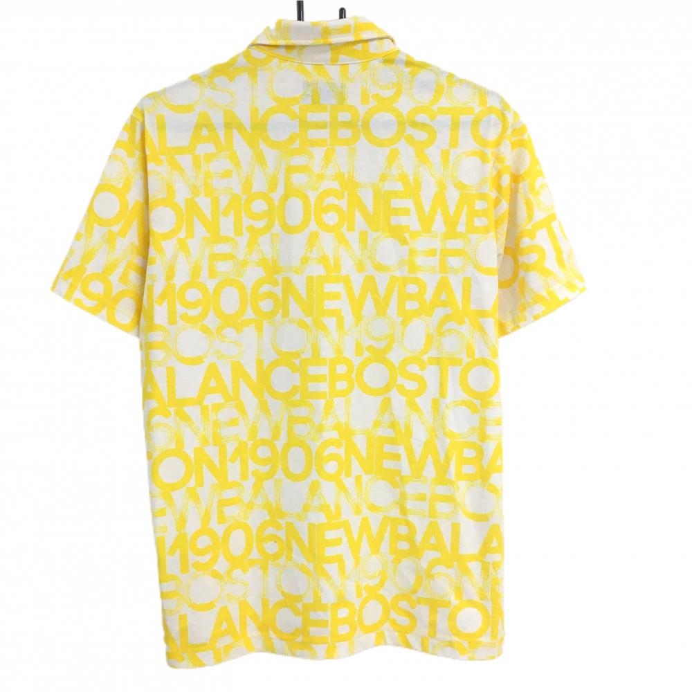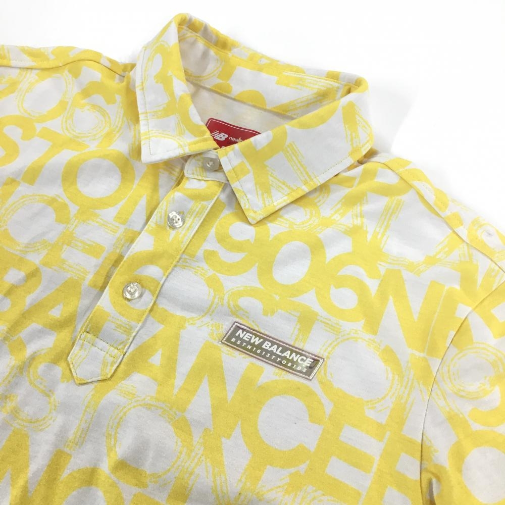 【美品】ニューバランスゴルフ 半袖ポロシャツ 白×イエロー ロゴ総柄 メンズ 6(XL) ゴルフウェア New Balance