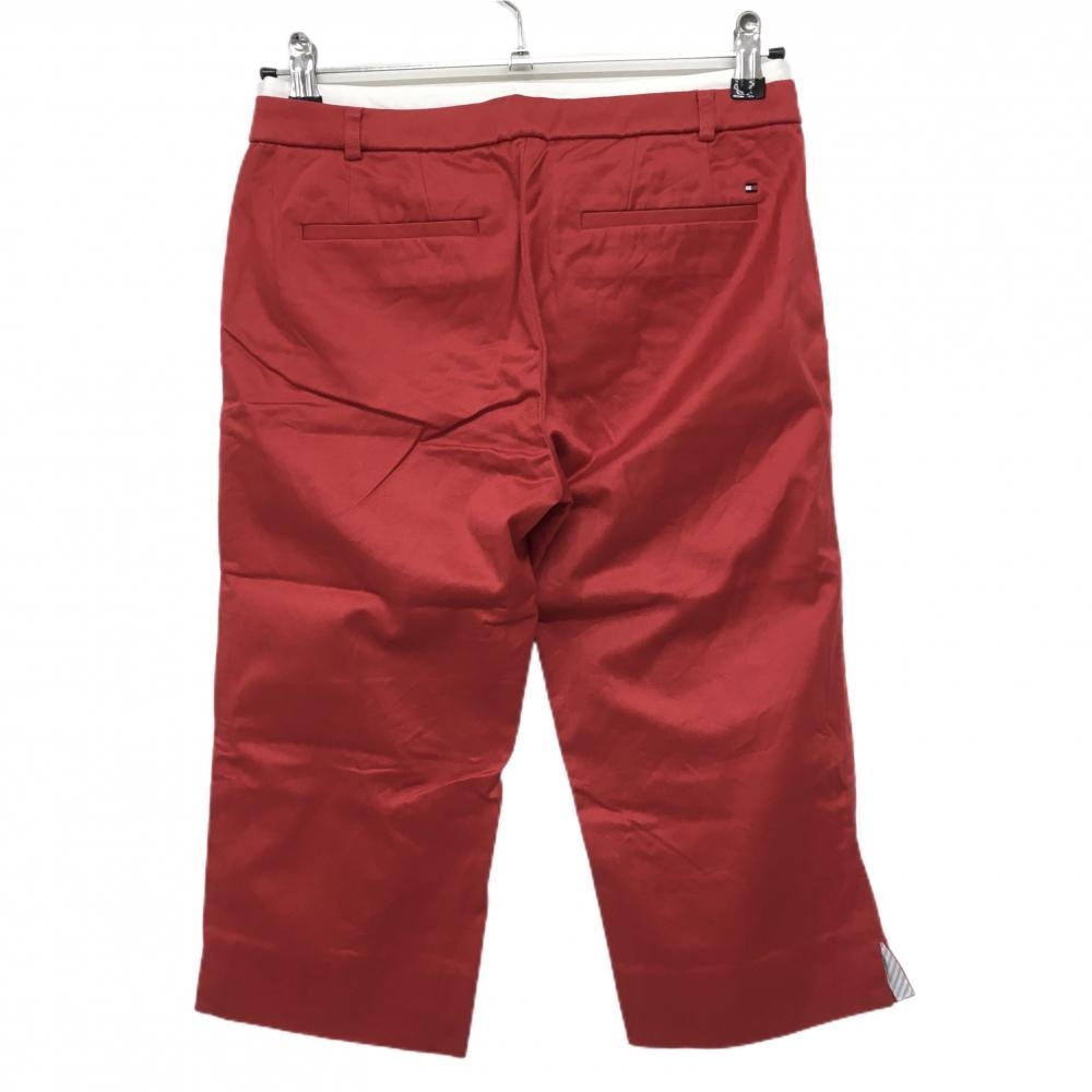 【美品】トミーヒルフィガー 七分丈パンツ レッド×白 無地 ストレッチ レディース M ゴルフウェア Tommy Hilfiger Golf