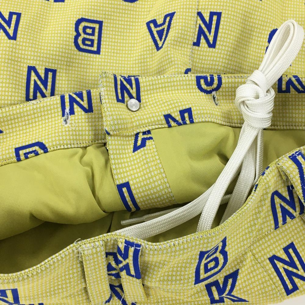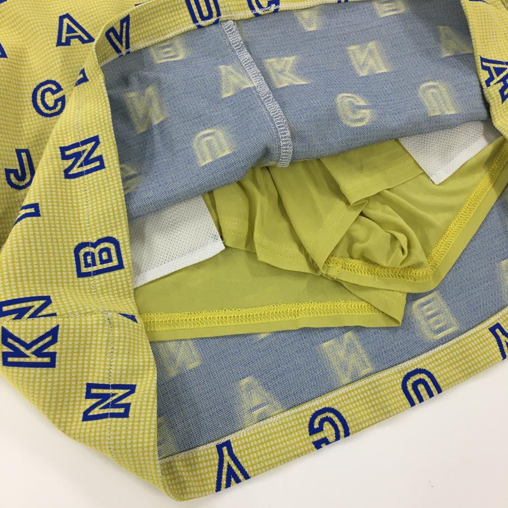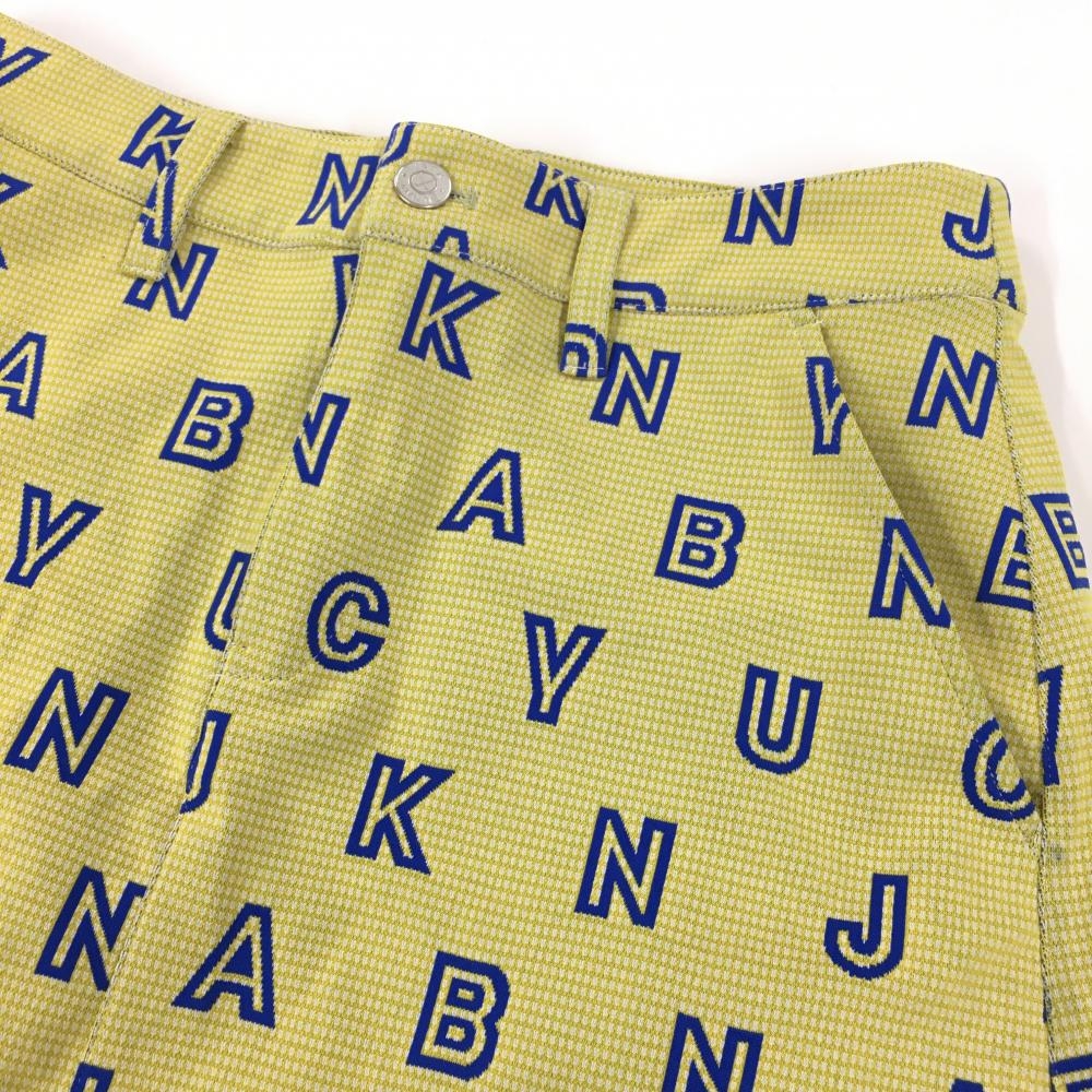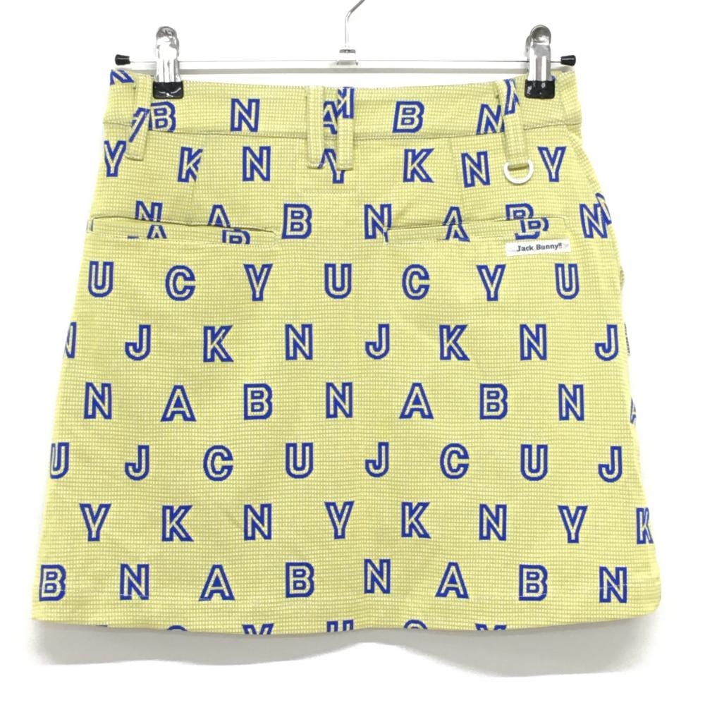 【美品】ジャックバニー スカート イエローグリーン×白 細チェック 英字柄ブルー レディース 1(M) ゴルフウェア 2022年モデル Jack Bunny