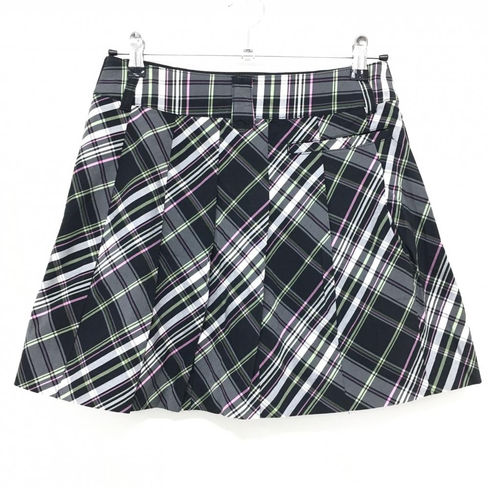 23区スポーツ プリーツスカート 黒×白 チェック ストレッチ レディース M ゴルフウェア 23区