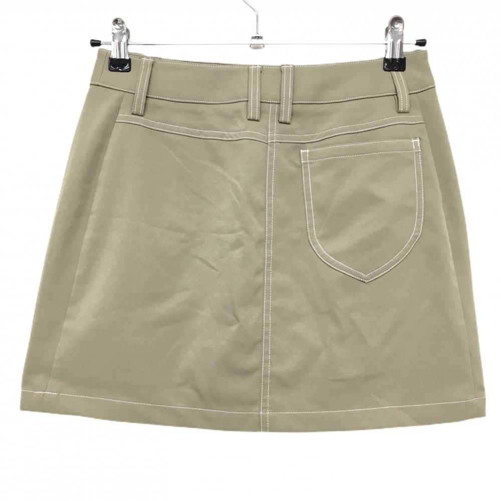【美品】プーマ スカート ベージュ×白 ステッチ ロゴ刺しゅう レディース S ゴルフウェア PUMA
