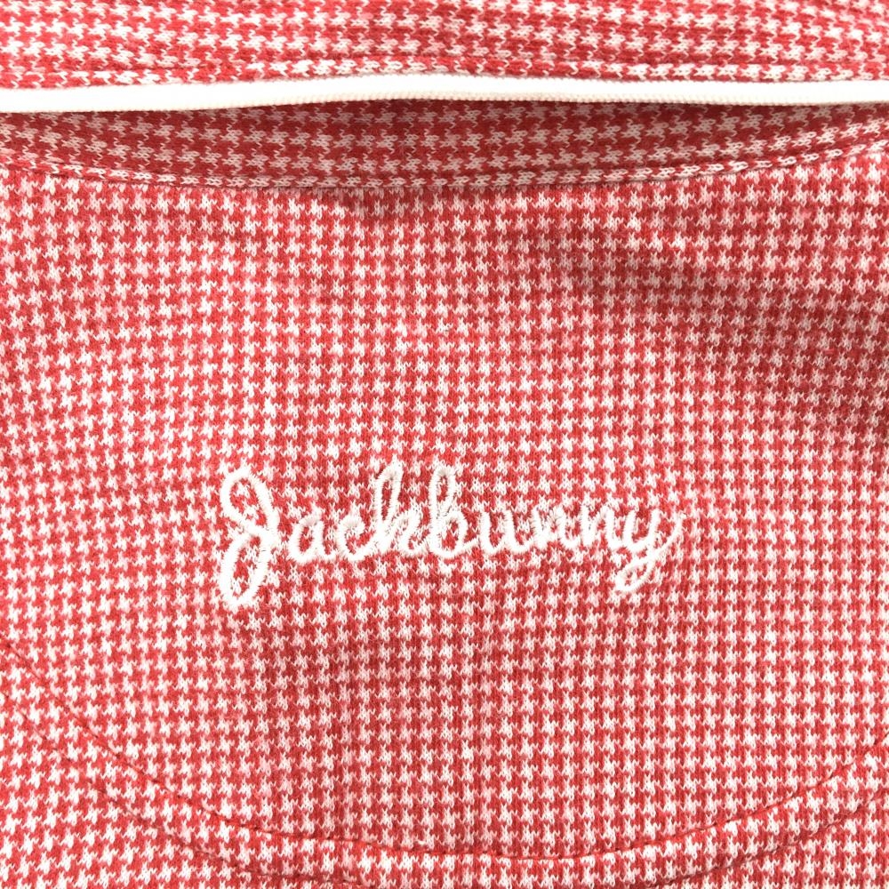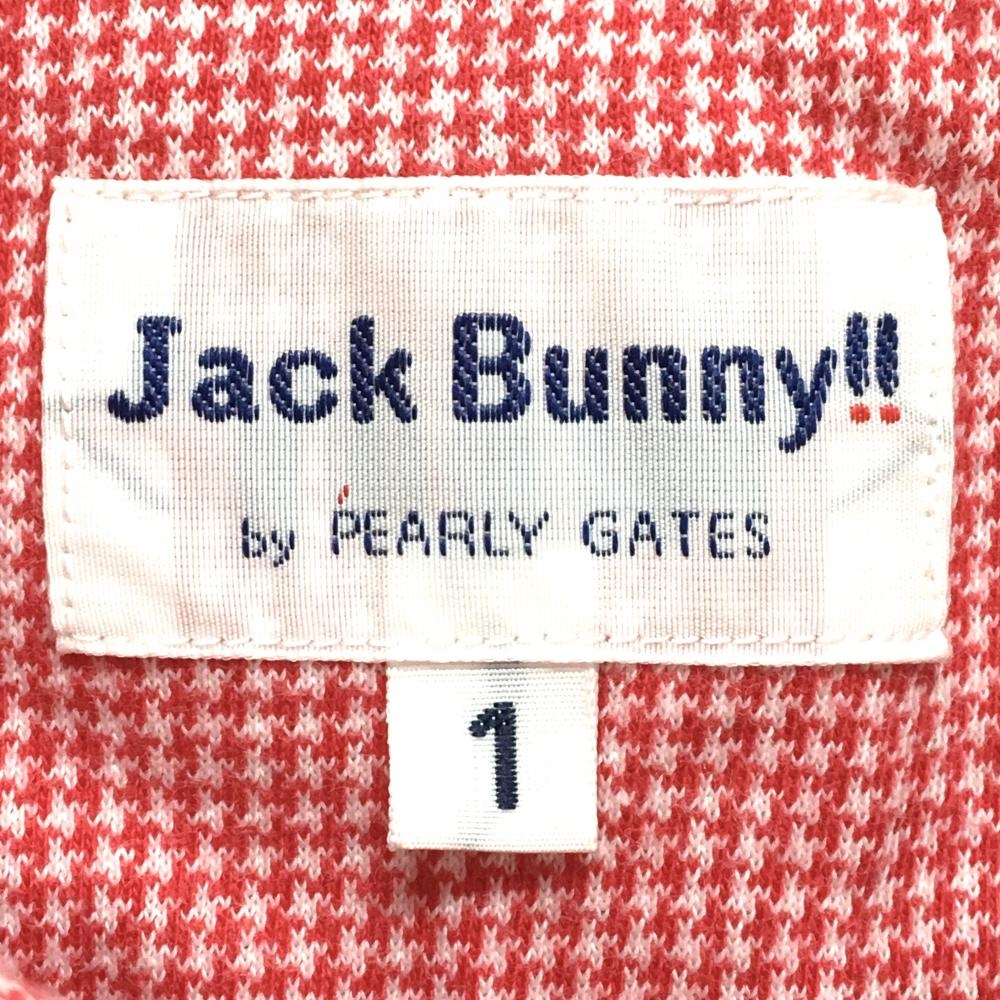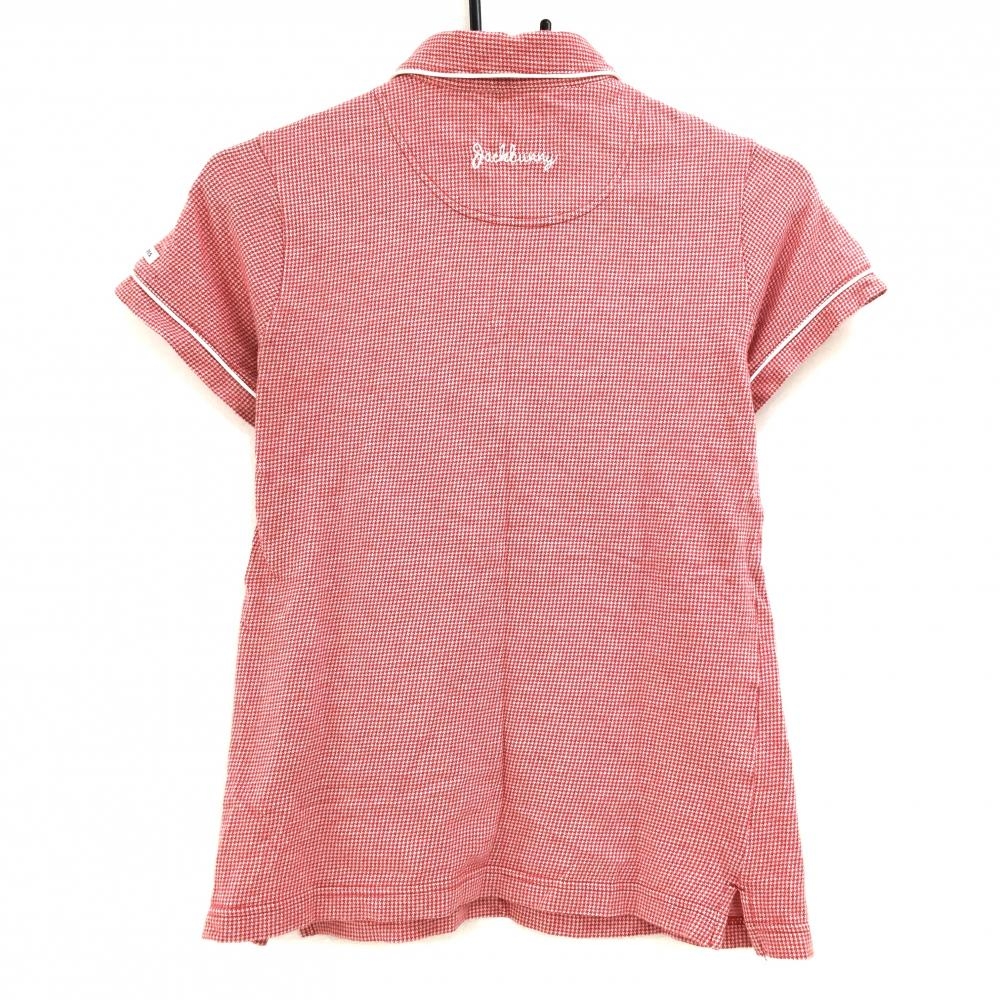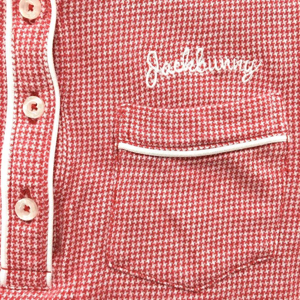【美品】ジャックバニー 半袖ポロシャツ レッド×白 千鳥格子 パイピング 胸ポケット レディース 1(M) ゴルフウェア Jack Bunny