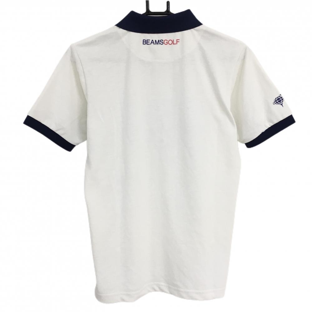 【超美品】ビームスゴルフ 半袖ポロシャツ 白×ネイビー フロントロゴ 日本製 メンズ S ゴルフウェア BEAMS GOLF