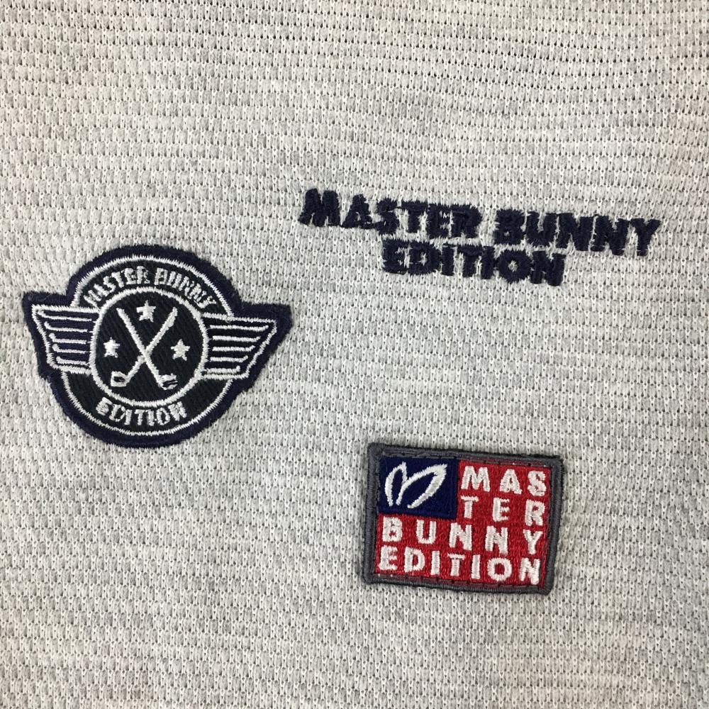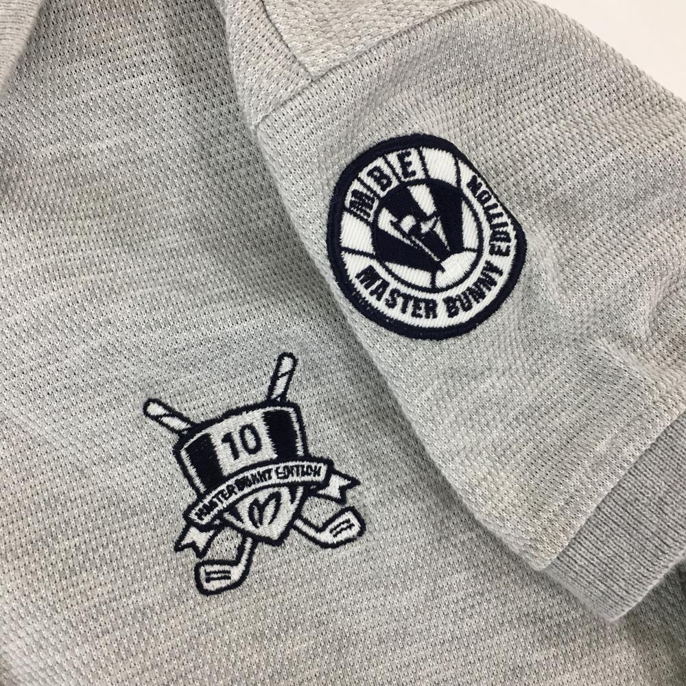【超美品】マスターバニー 半袖ポロシャツ ライトグレー×ネイビー ロゴワッペン レディース 0(S) ゴルフウェア MASTER BUNNY EDITION