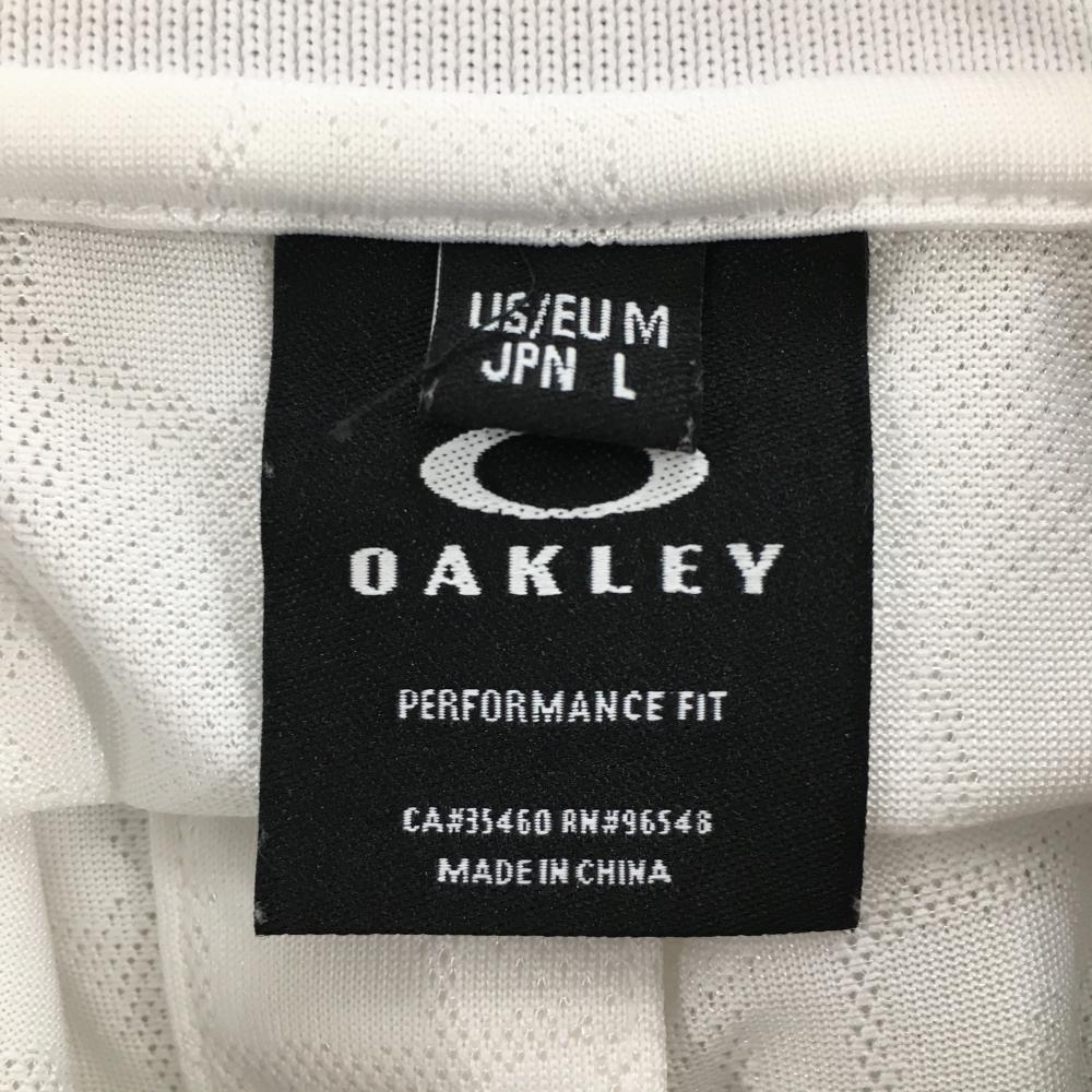 【超美品】オークリー 半袖ポロシャツ 白 地模様総柄 襟ロゴ メンズ L ゴルフウェア Oakley