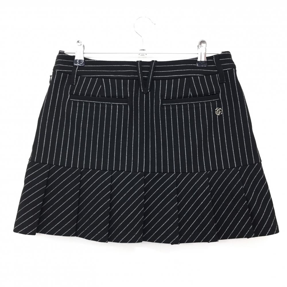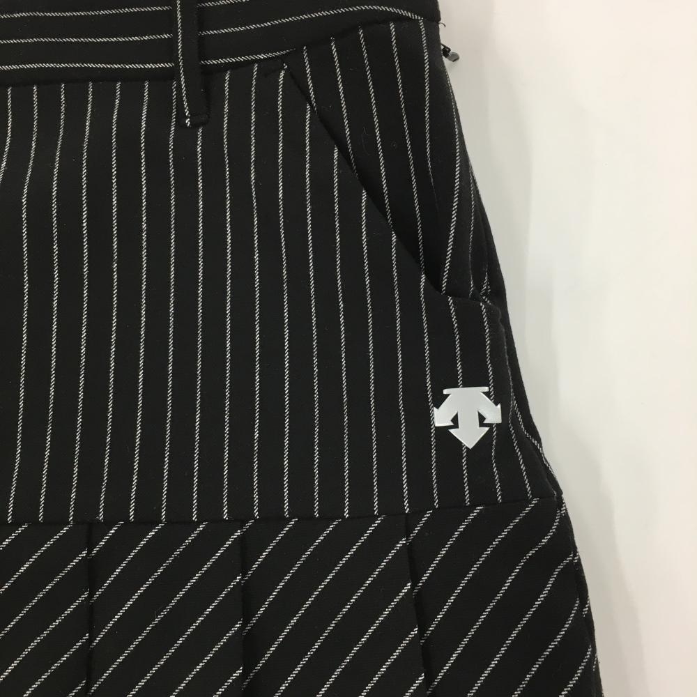 【超美品】デサントゴルフ スカート 黒×白 ストライプ 斜めストライプ 裾プリーツ 中田英寿 レディース M ゴルフウェア DESCENTE
