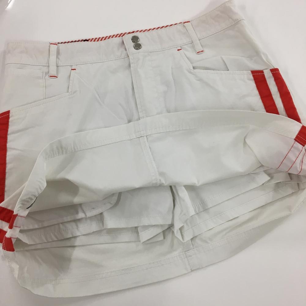【美品】ルコックゴルフ スカート 白×レッド サイドライン ストレッチ 内側インナーパンツ レディース 9 ゴルフウェア le coq sportif