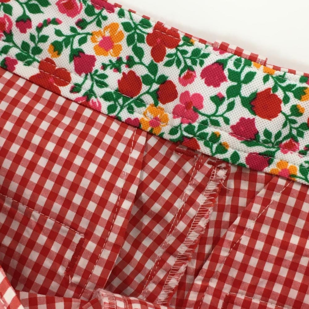 【超美品】ルコックゴルフ パンツ 白×レッド ギンガムチェック ウエスト内側花柄 ストレッチ レディース 11 ゴルフウェア le coq sportif