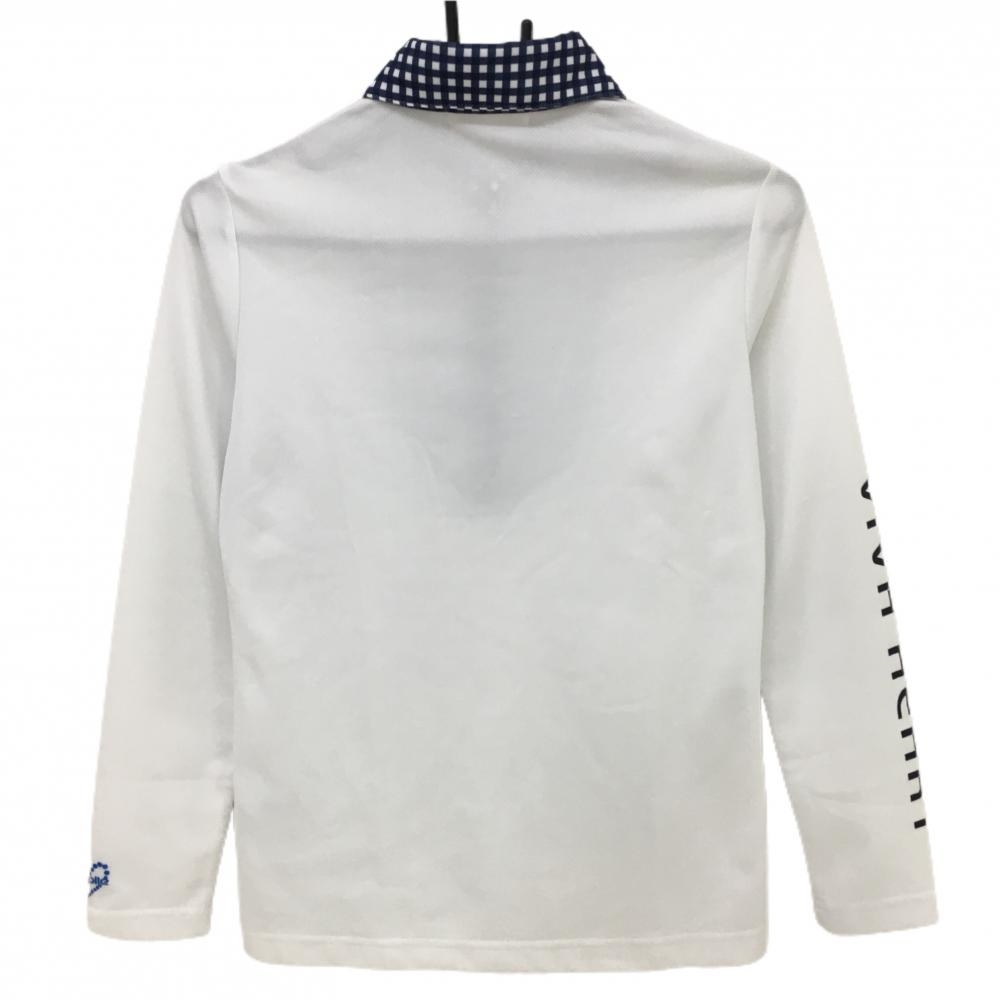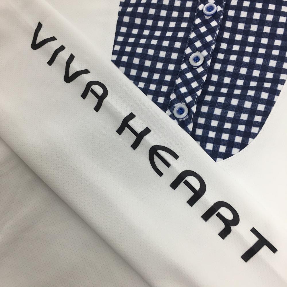 【超美品】ビバハート 長袖ポロシャツ 白×ネイビー 一部ギンガムチェック レプリエ レディース 40(M) ゴルフウェア VIVA HEART