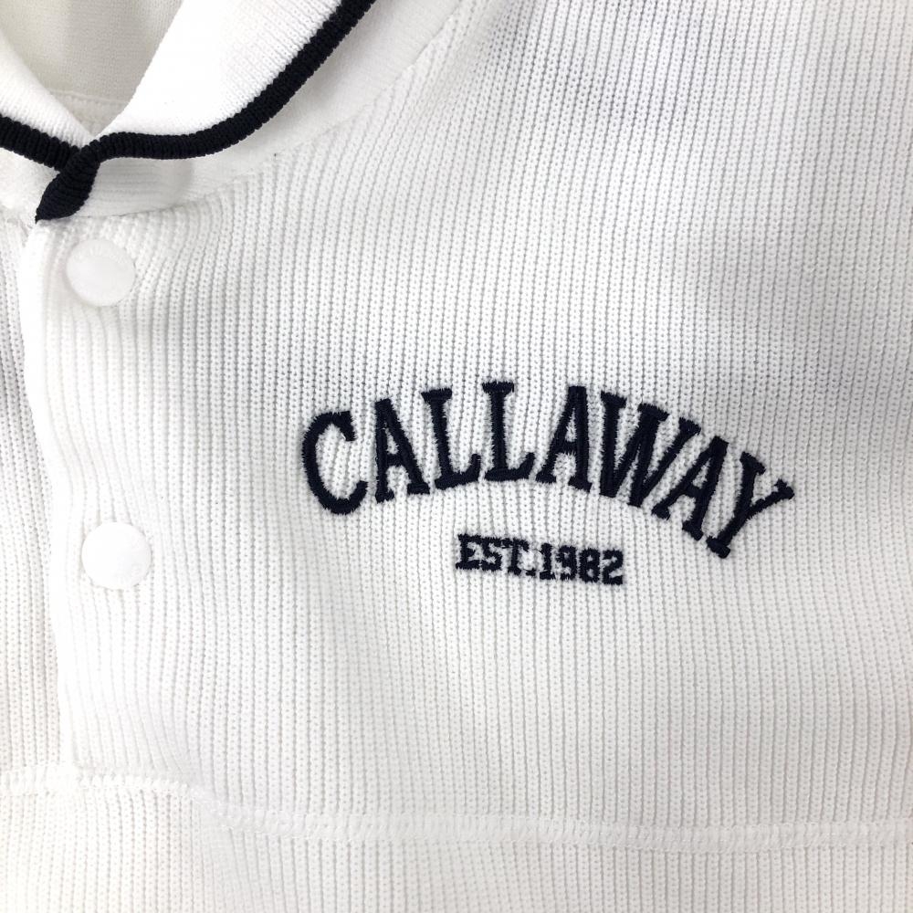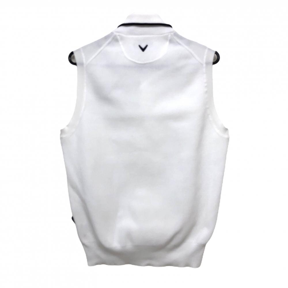 【超美品】キャロウェイ 襟付ニットベスト 白×黒 スナップボタン ロゴ刺しゅう メンズ M ゴルフウェア 2023年モデル Callaway