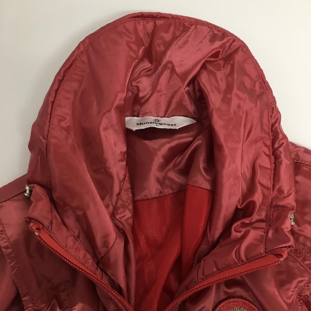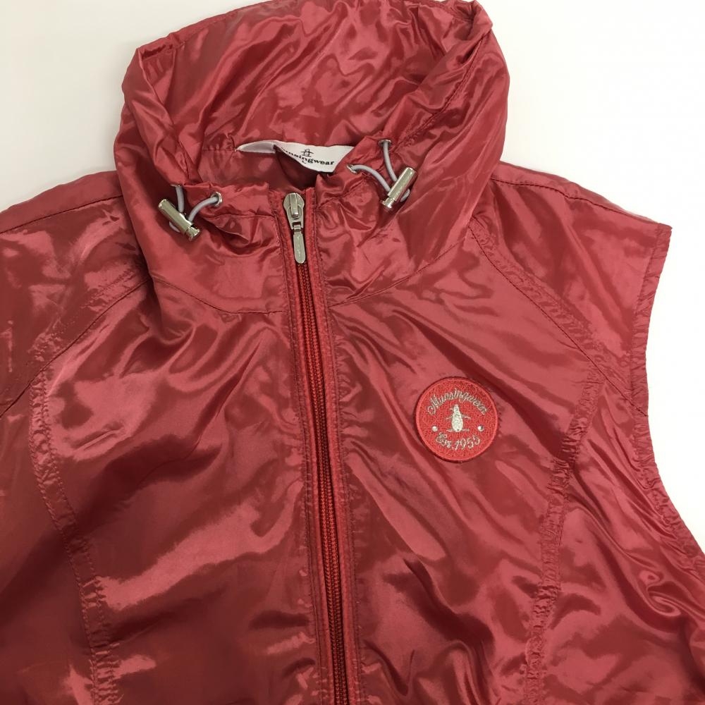 【美品】マンシングウェア ノースリーブワンピース レッドピンク 薄手 フルジップ ロゴワッペン レディース L ゴルフウェア Munsingwear