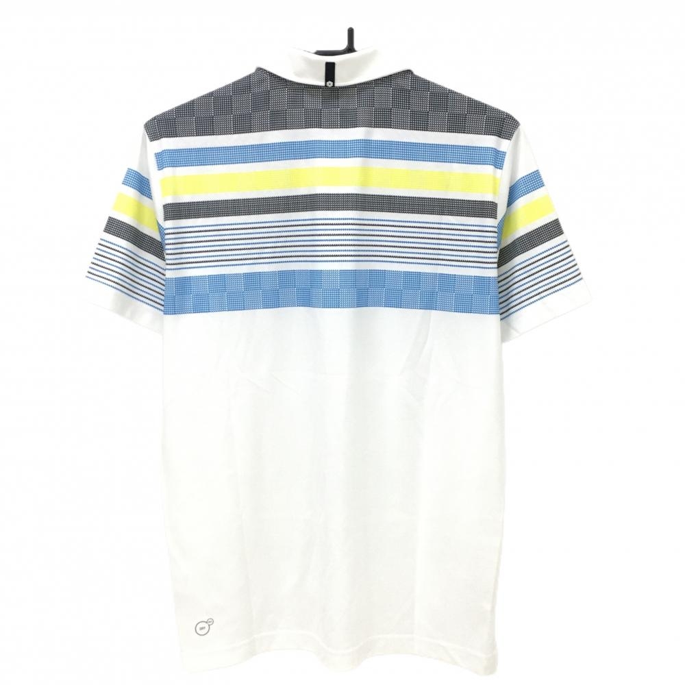 【超美品】プーマ 半袖ポロシャツ 白×ブルー 上部ボーダー調 立体ロゴ メンズ M ゴルフウェア PUMA