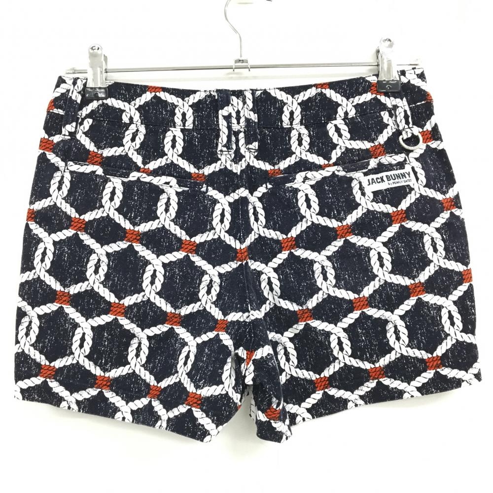 ジャックバニー ショートパンツ ダークネイビー×白 総柄 ポケット口、裾など色褪せ レディース 0(S) ゴルフウェア Jack Bunny