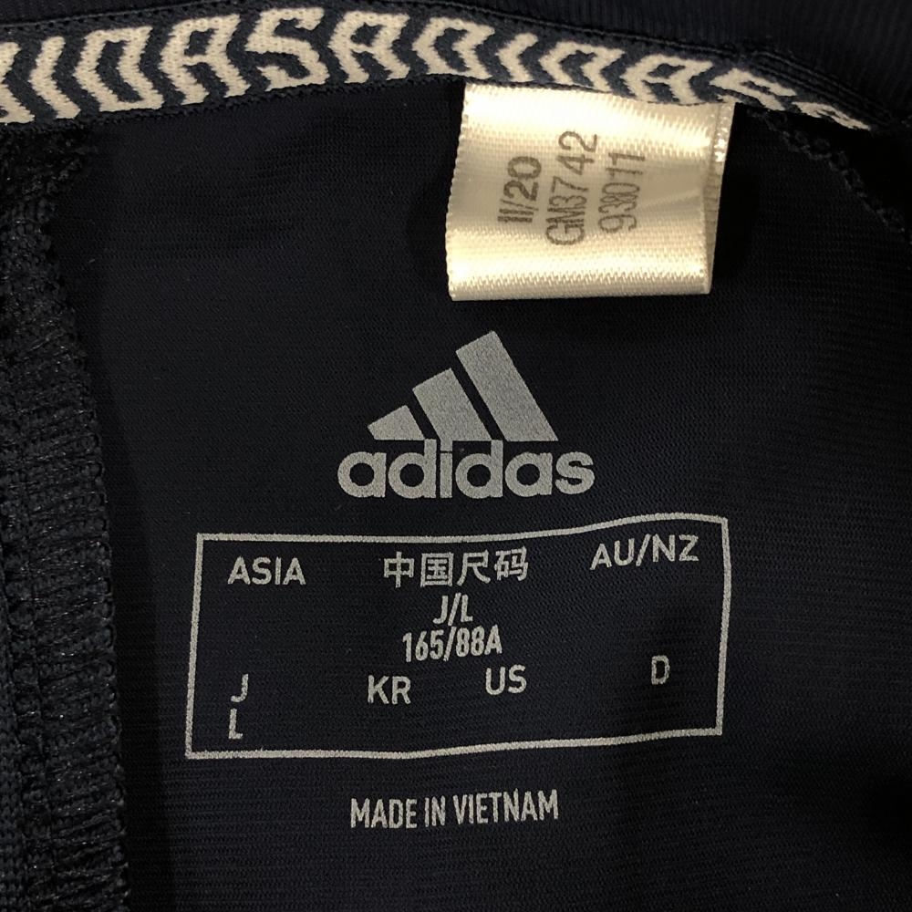【美品】アディダス 半袖ポロシャツ ネイビー×ライトグレー 肩3ライン レディース L ゴルフウェア adidas