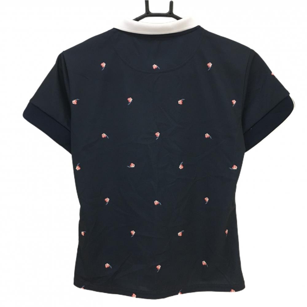 【美品】プーマ 半袖ポロシャツ ネイビー×ピンク 総柄 襟白 レディース S ゴルフウェア PUMA