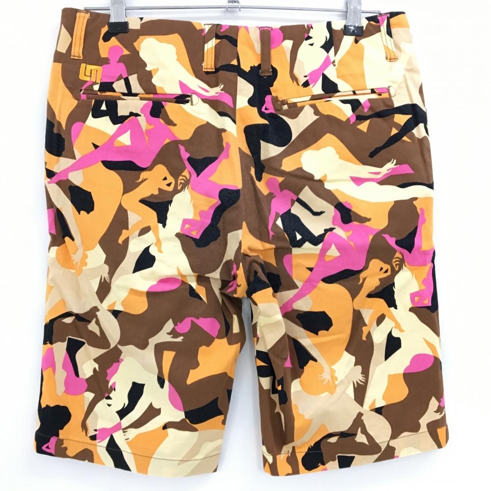ラウドマウス ハーフパンツ ブラウン×ピンク シルエット総柄 ストレッチ メンズ 32 ゴルフウェア LOUDMOUTH