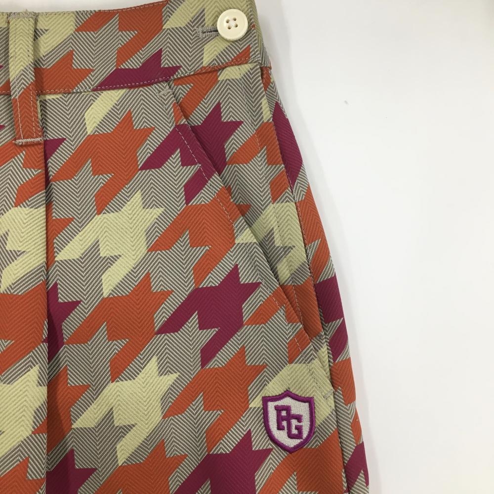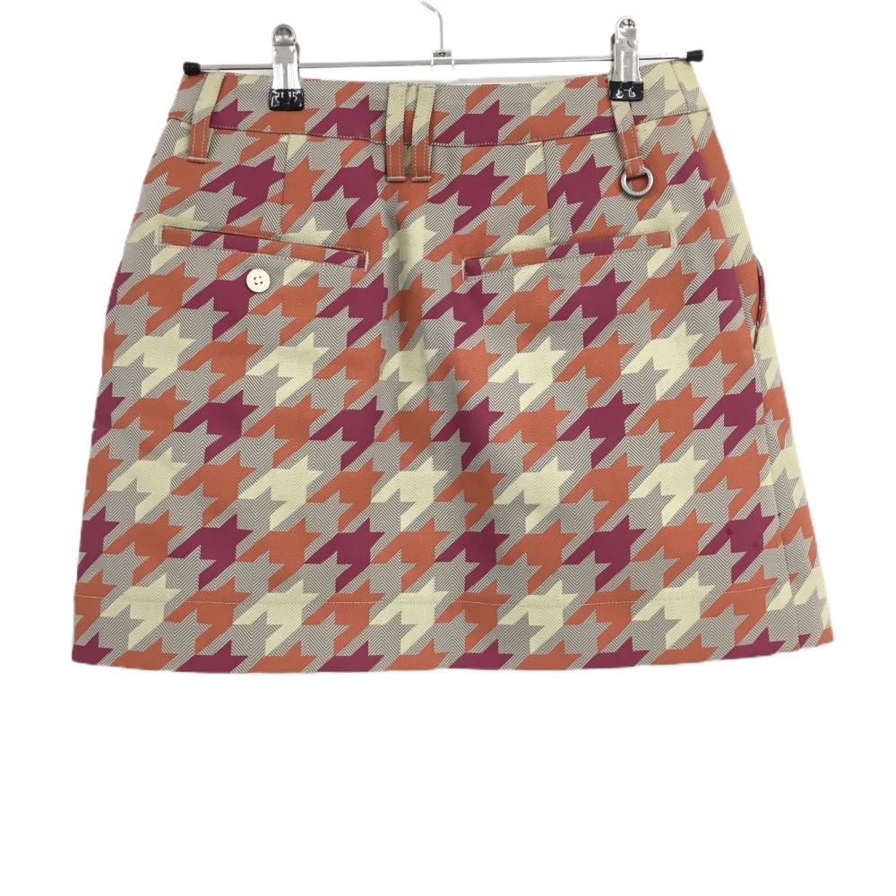 パーリーゲイツ スカート オレンジ×ピンク 千鳥格子 ヘリンボーン織生地 レディース 0(S) ゴルフウェア PEARLY GATES
