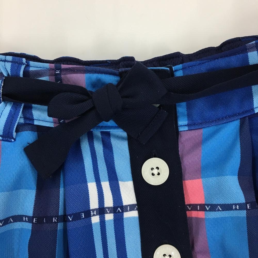 【超美品】ビバハート スカート ブルー×ピンク チェック ウエストゴム&調節紐 レディース 38(S) ゴルフウェア VIVA HEART
