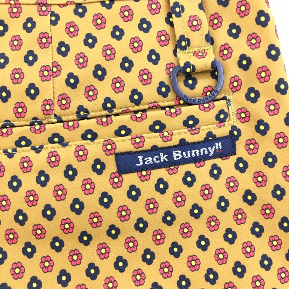 【超美品】ジャックバニー ショートパンツ イエローブラウン×黒 花柄 バックロゴ レディース 0(S) ゴルフウェア Jack Bunny