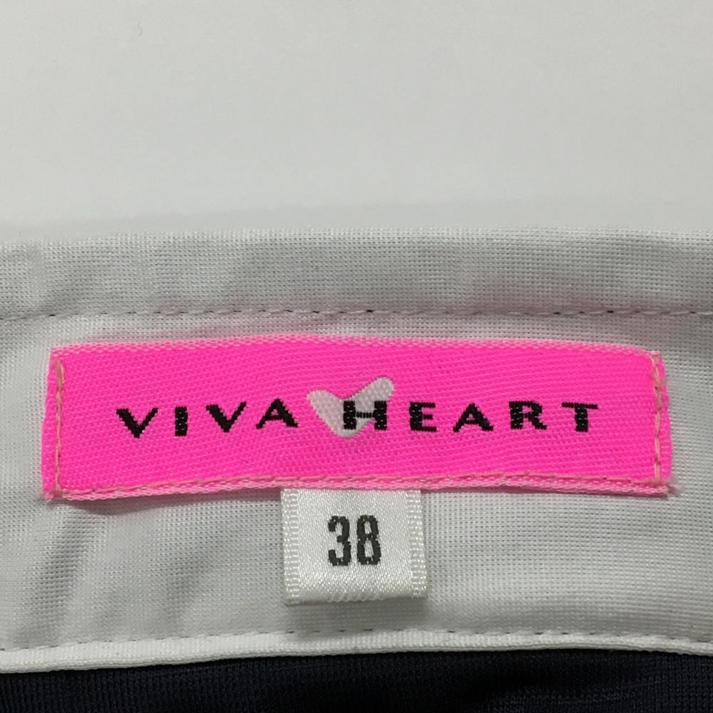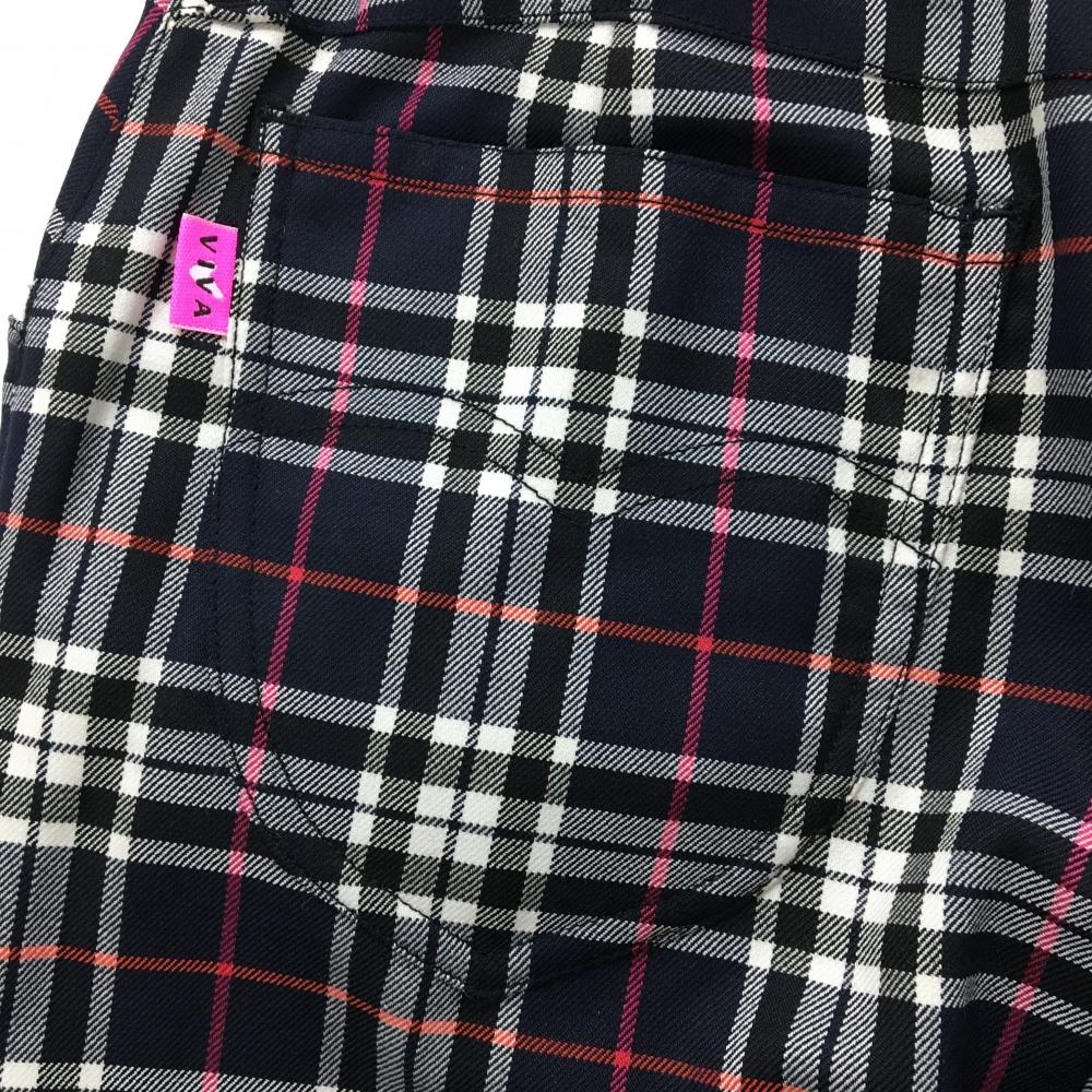 【超美品】ビバハート パンツ ネイビー×白 チェック柄 ハート レディース 38(S) ゴルフウェア VIVA HEART
