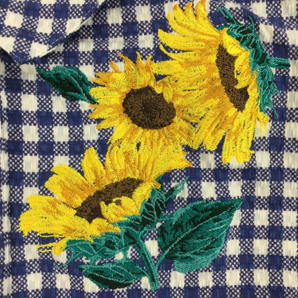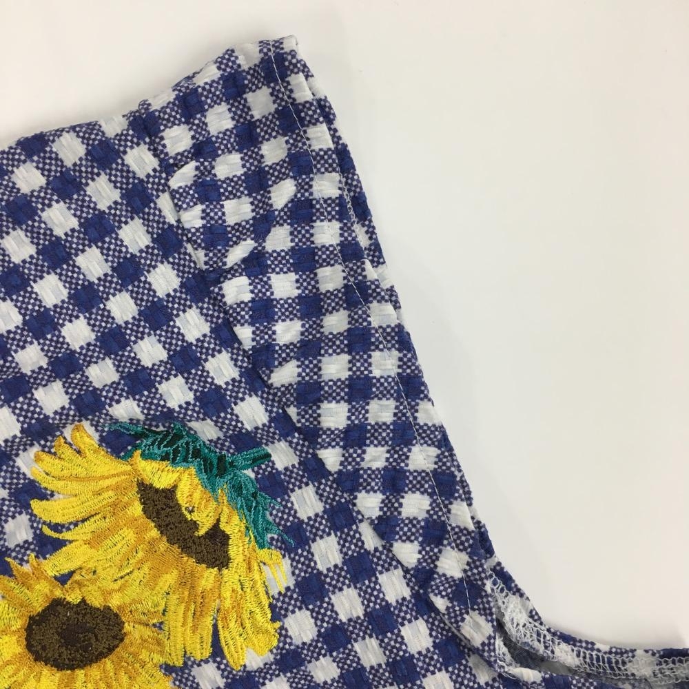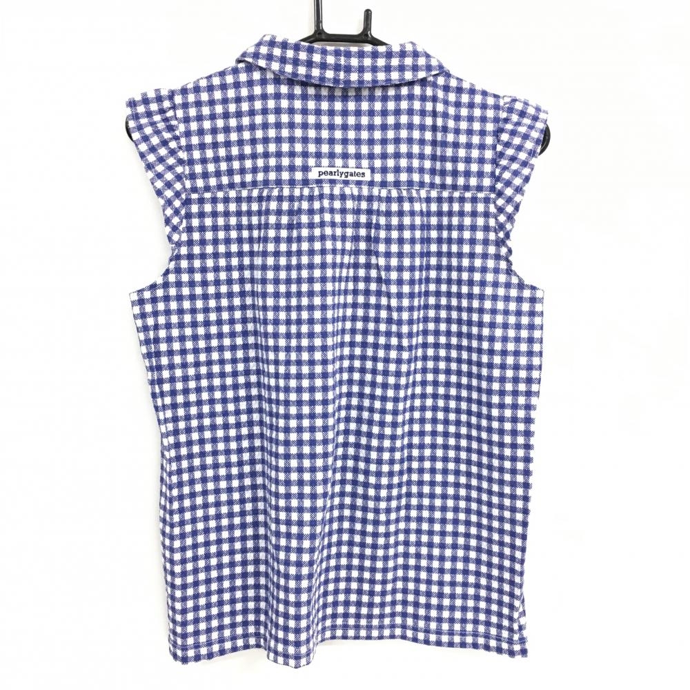 【超美品】パーリーゲイツ ノースリーブポロシャツ ブルー×白 チェック サッカー生地調 レディース 1(M) ゴルフウェア PEARLY GATES