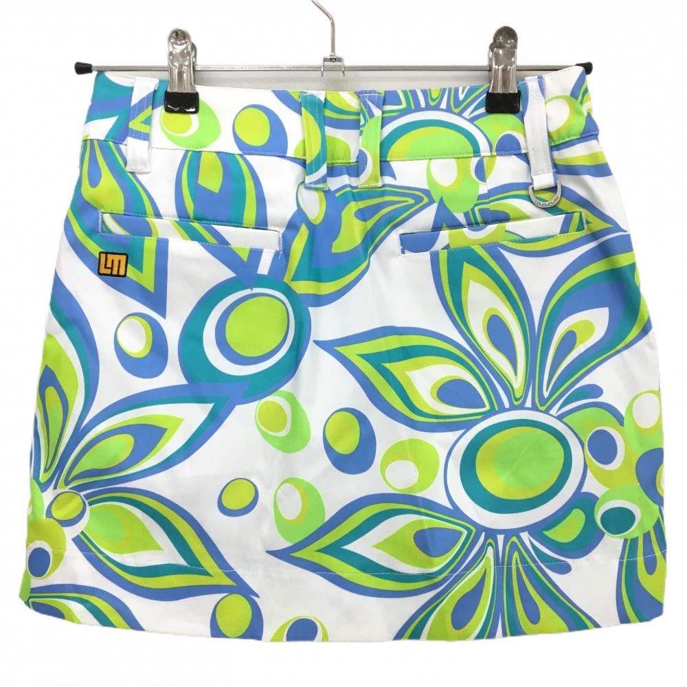 【超美品】ラウドマウス スカート 白×ライトグリーン×ブルー シャガデリック 内側インナーパンツ レディース S ゴルフウェア LOUDMOUTH