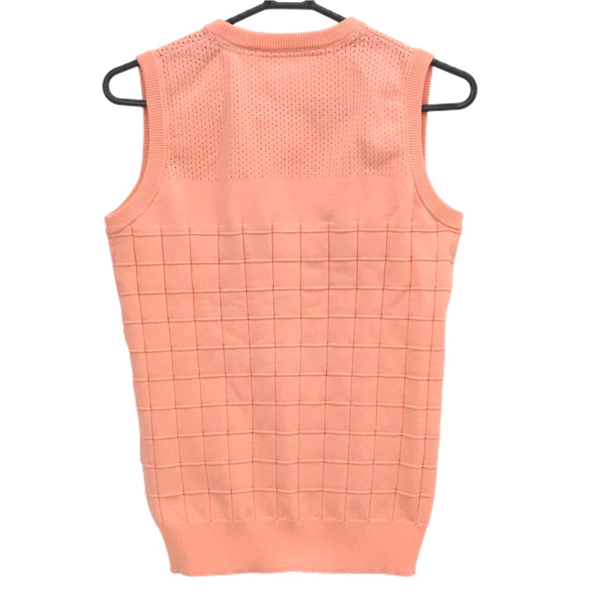 【美品】ニューバランスゴルフ ニットベスト サーモンピンク×白 上部透かし編み レディース 2(L) ゴルフウェア New Balance