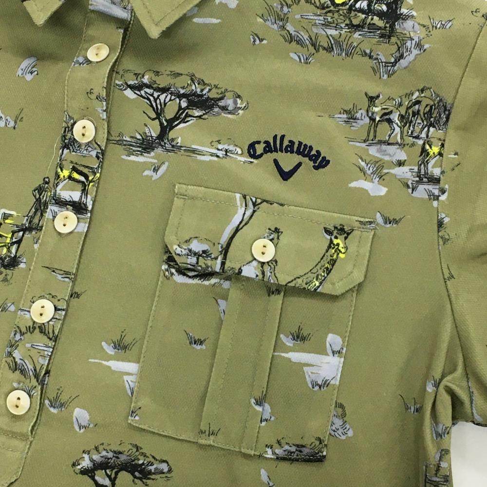 【超美品】キャロウェイ 半袖ポロシャツ スモーキーグリーン×ダークグリーン レディース L ゴルフウェア Callaway