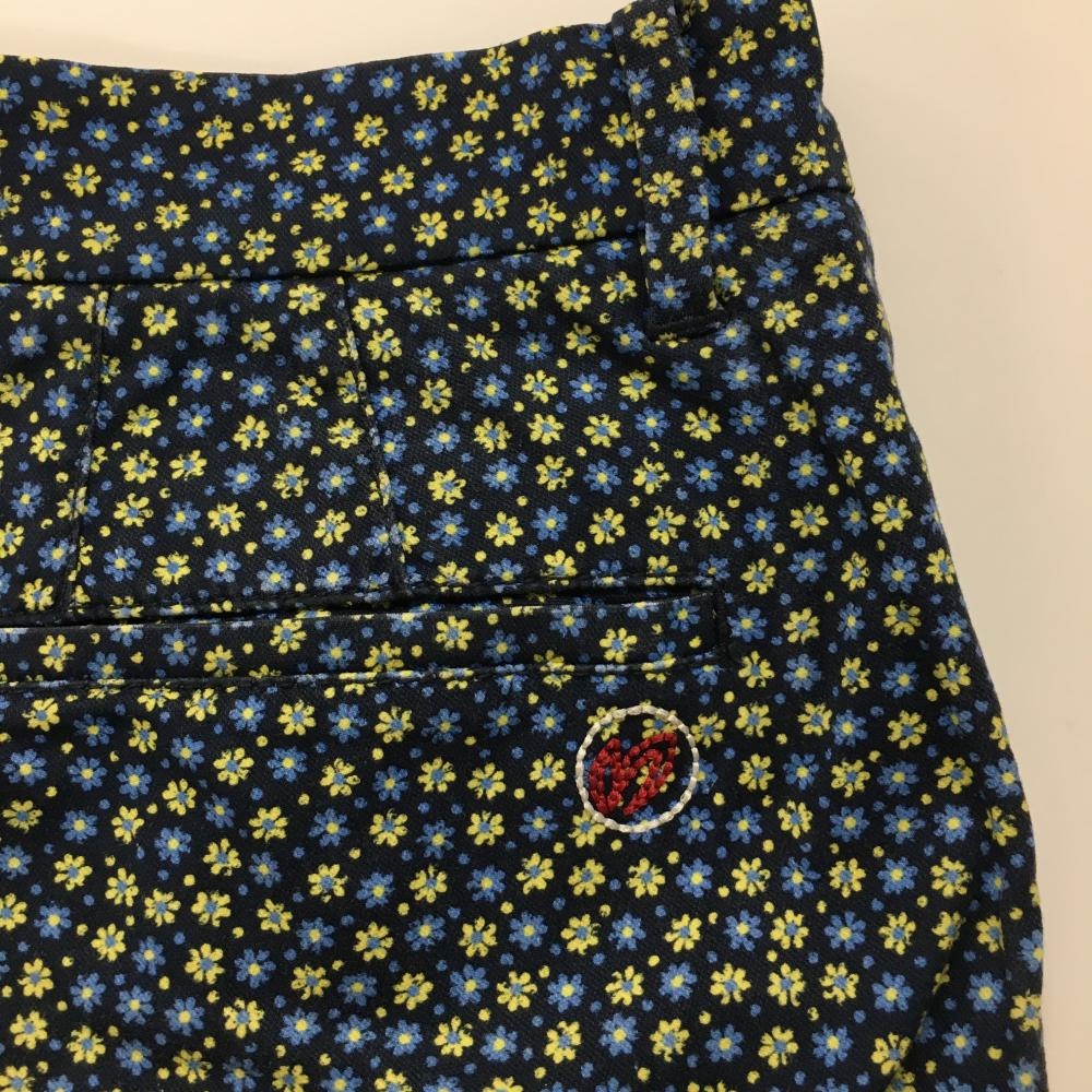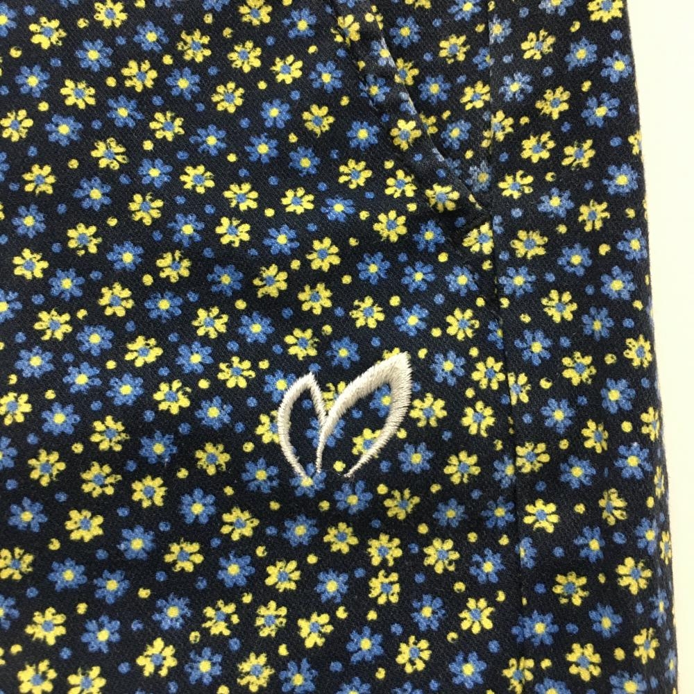【美品】マスターバニー パンツ ネイビー×ブルー×イエロー 小花柄 ストレッチ メンズ 6(XL) ゴルフウェア MASTER BUNNY EDITION