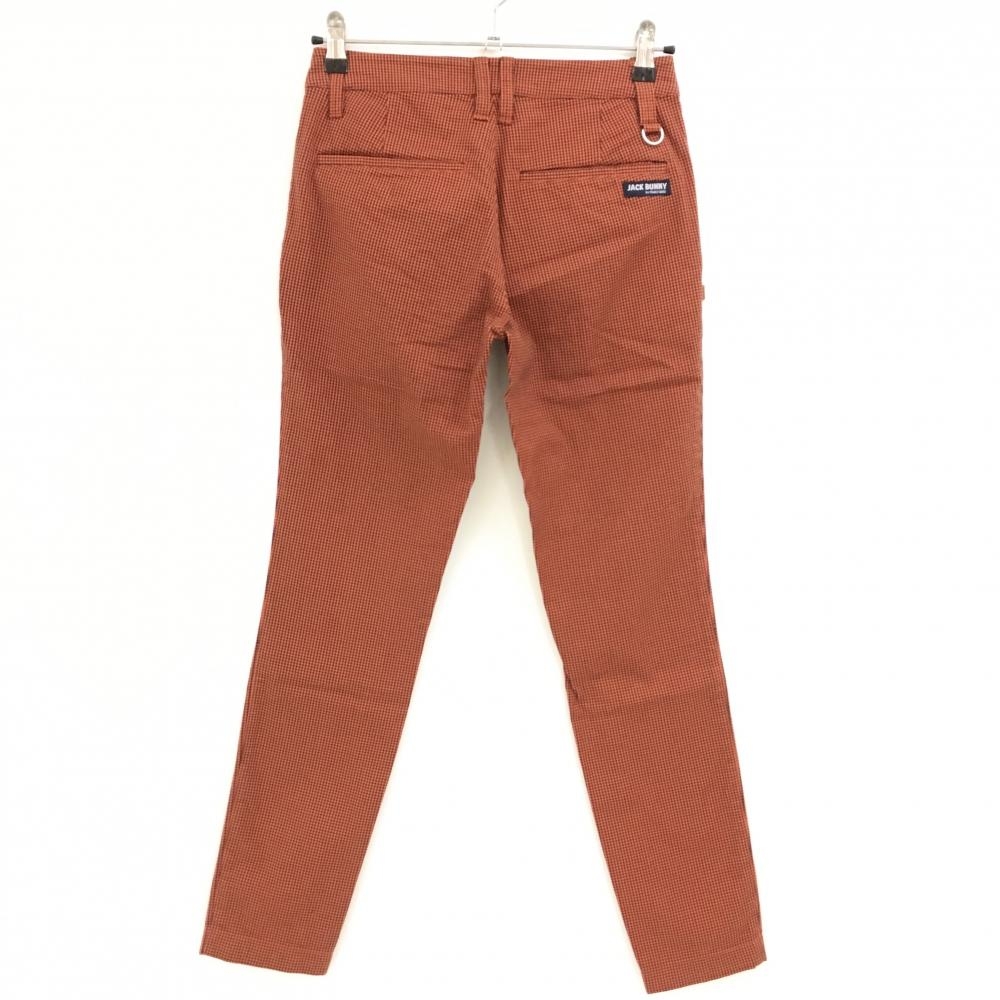 【美品】ジャックバニー パンツ オレンジ×黒 千鳥格子柄 バックロゴ レディース 0(S) ゴルフウェア Jack Bunny