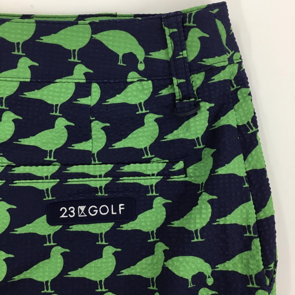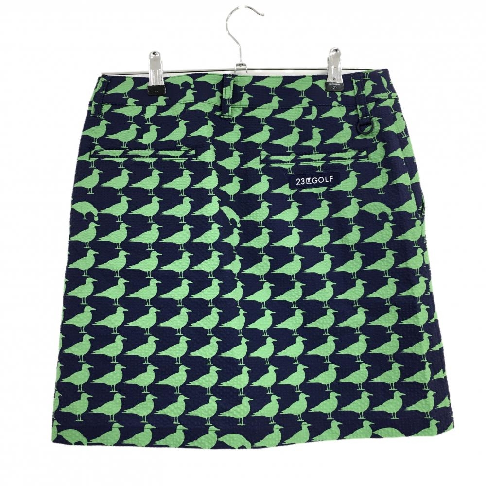 【超美品】23区ゴルフ スカート ネイビー×グリーン 鳥柄 サッカー生地 レディース 64(M) ゴルフウェア 23区