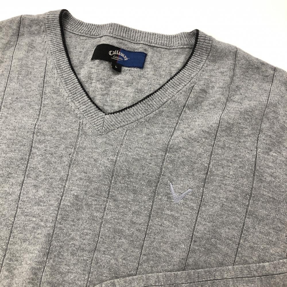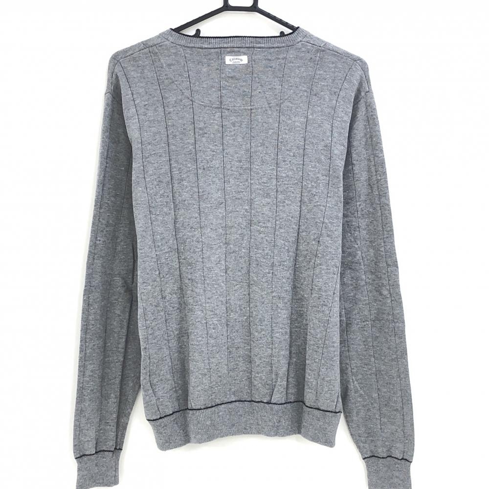 キャロウェイ セーター グレー ストライプ編み ニット コットン混 メンズ L ゴルフウェア Callaway