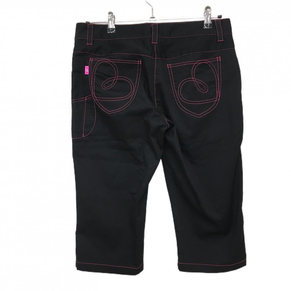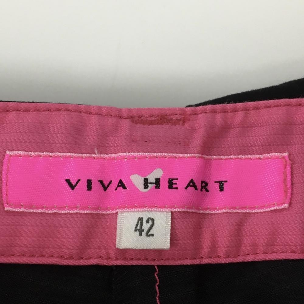 【超美品】ビバハート ハーフパンツ 黒 ステッチピンク ストライプ地模様 半端丈 レディース 42(L) ゴルフウェア VIVA HEART