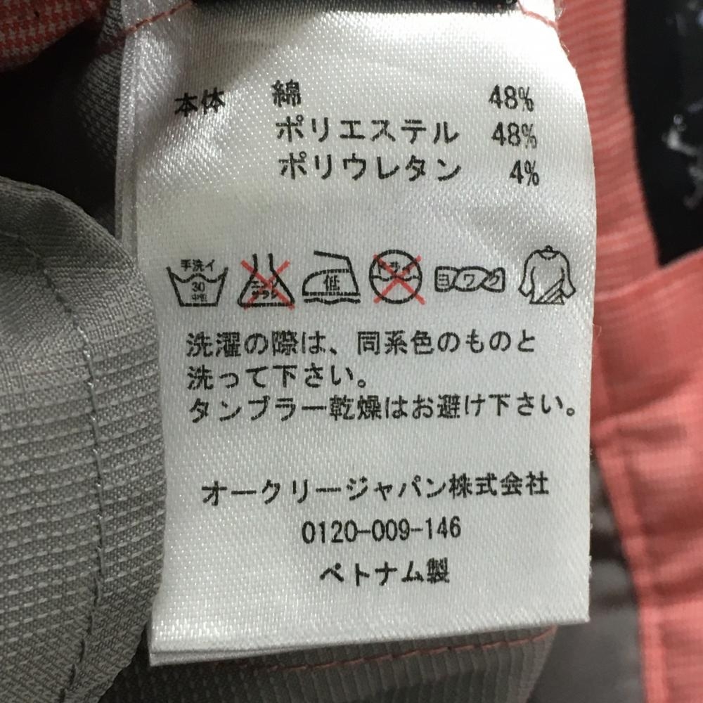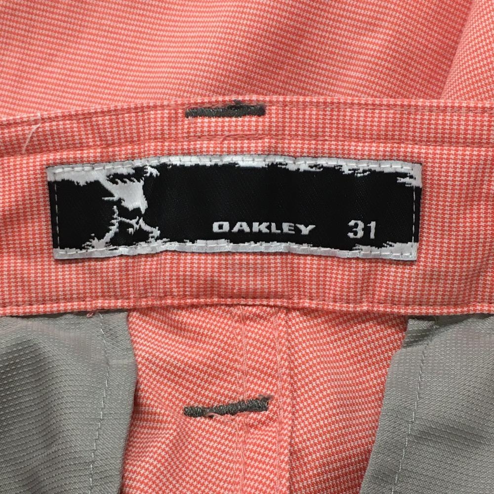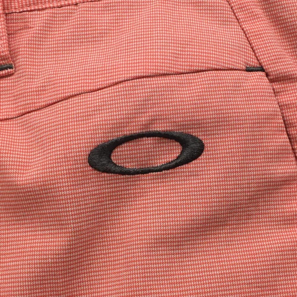 【美品】オークリー パンツ オレンジ×白 千鳥格子 ティー装着可 ストレッチ メンズ 31 ゴルフウェア Oakley