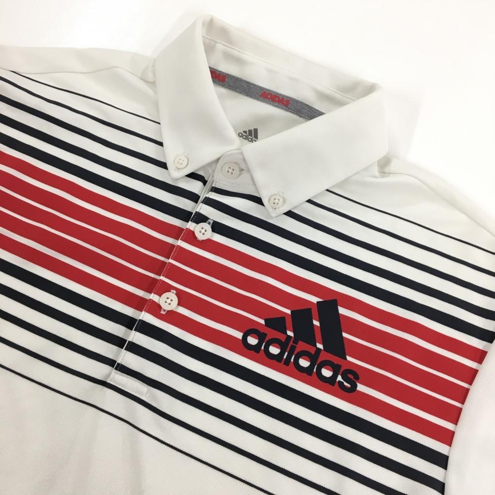 アディダス 半袖ポロシャツ 白×ネイビー 一部ボーダー調 メンズ L ゴルフウェア adidas