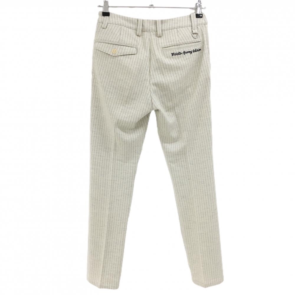 【超美品】マスターバニー パンツ アイボリー×グレー ストライプ ウール混 ロゴ刺しゅう レディース 0 ゴルフウェア MASTER BUNNY EDITION