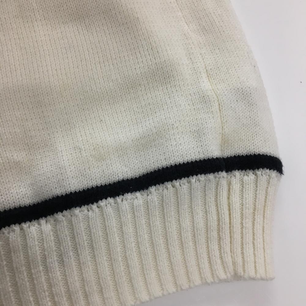 【美品】ジュンアンドロペ ニットベスト 白×ネイビー ハーフジップ 後ろビッグロゴ レディース L ゴルフウェア JUN&ROPE