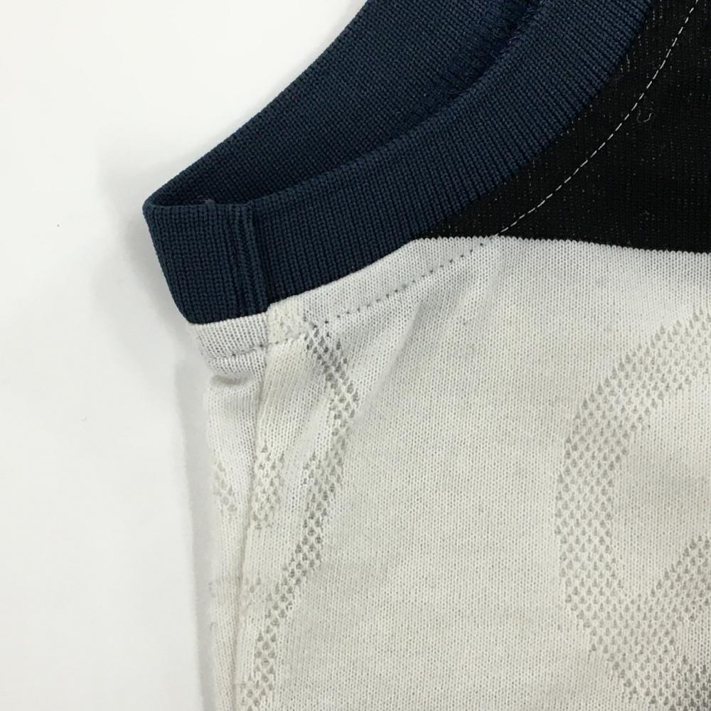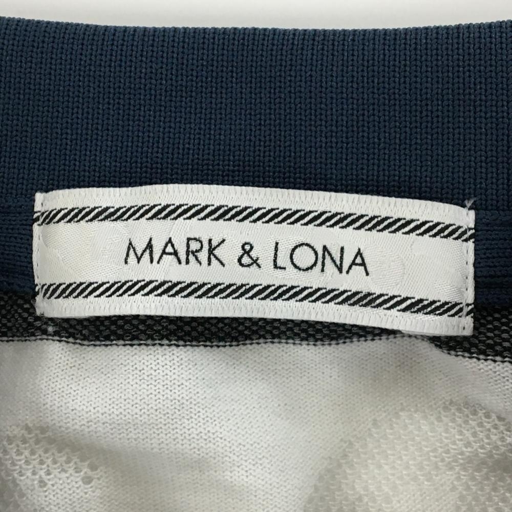 マークアンドロナ ノースリーブポロシャツ 白×ダークネイビー ボーダー 白地部分柄 立体ロゴ レディース S ゴルフウェア MARK&LONA