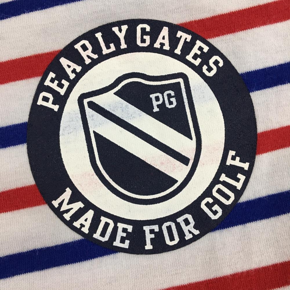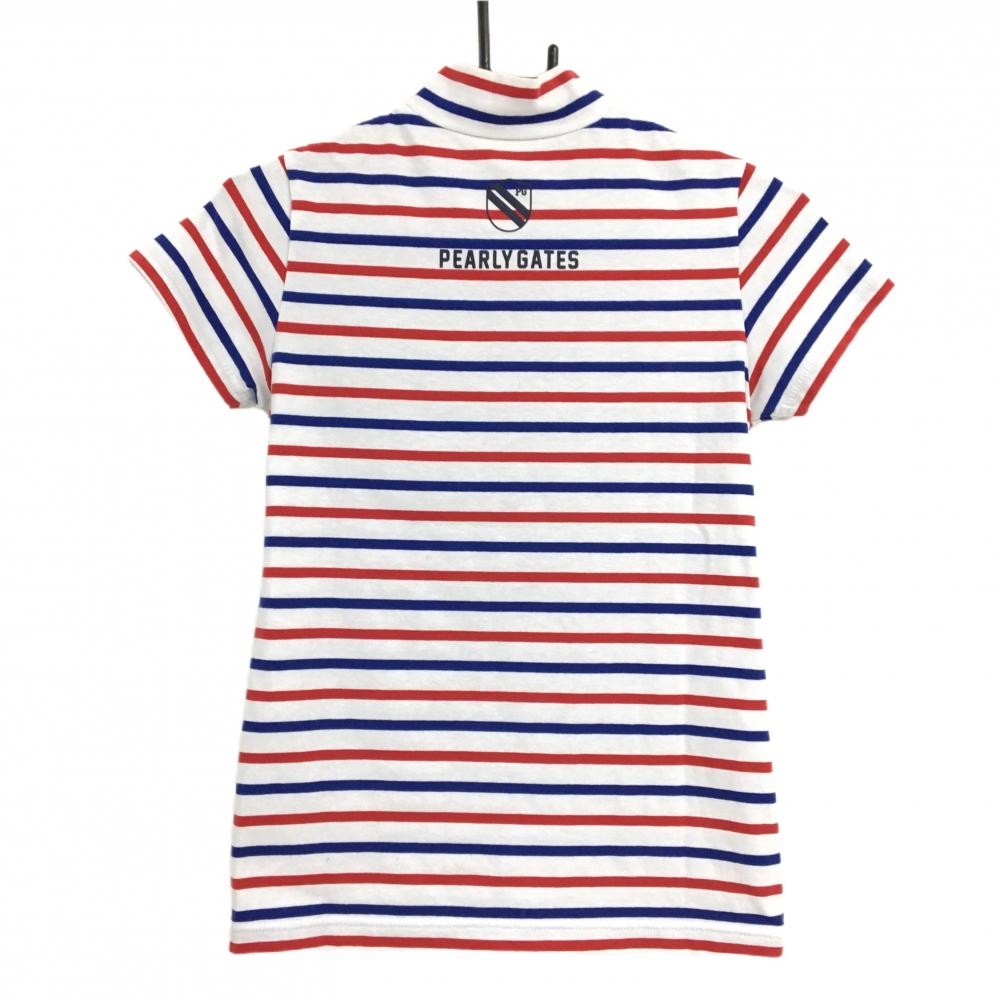 【美品】パーリーゲイツ 半袖ハイネックシャツ 白×レッド×ブルー ボーダー トリコロール レディース 0(S) ゴルフウェア PEARLY GATES