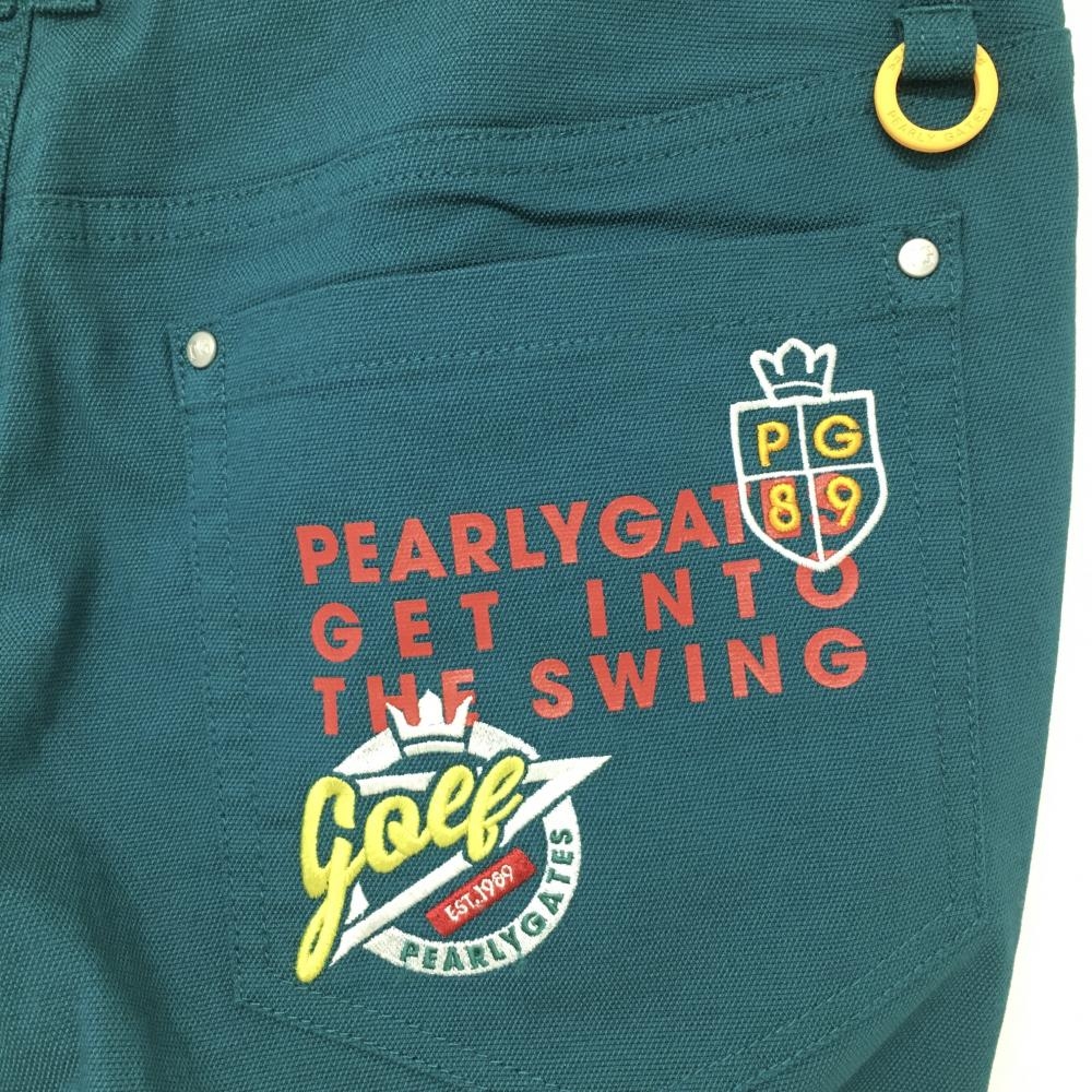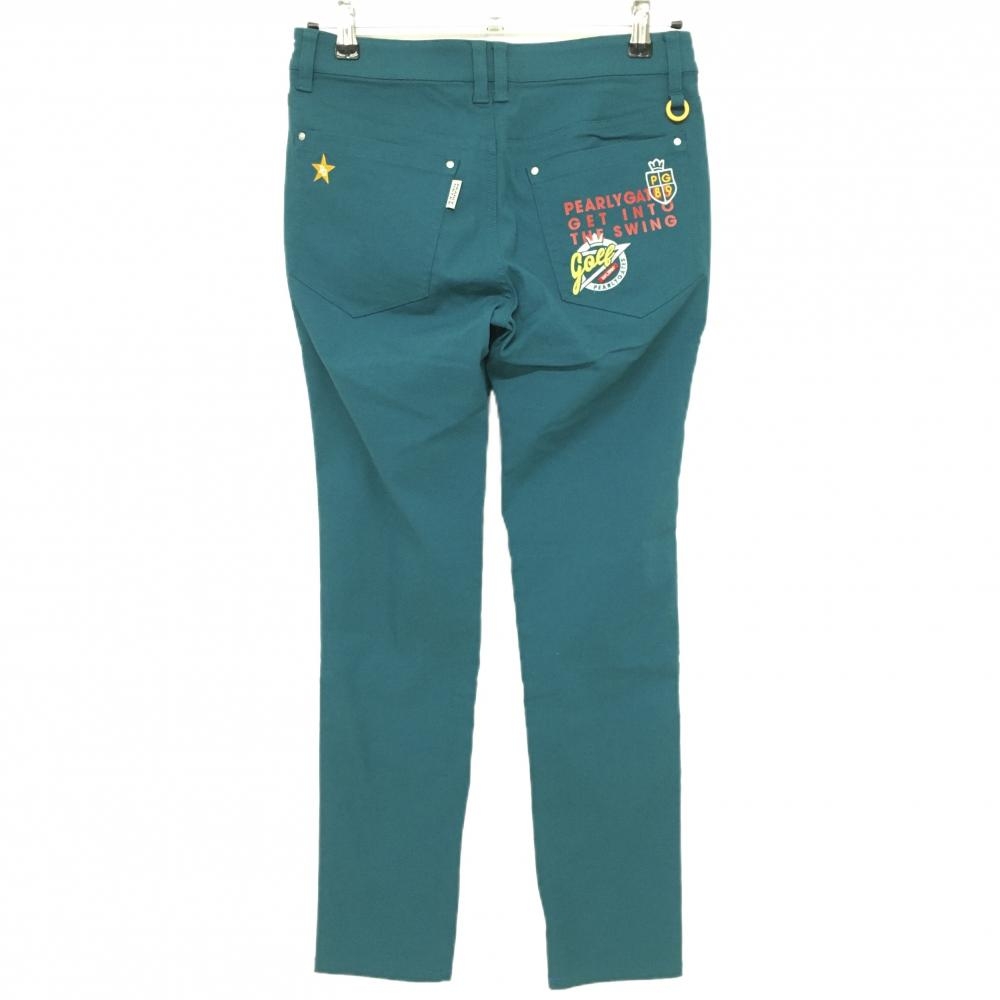 【超美品】パーリーゲイツ パンツ ブルーグリーン ストレッチ ウエストロゴ レディース 1(M) ゴルフウェア PEARLY GATES